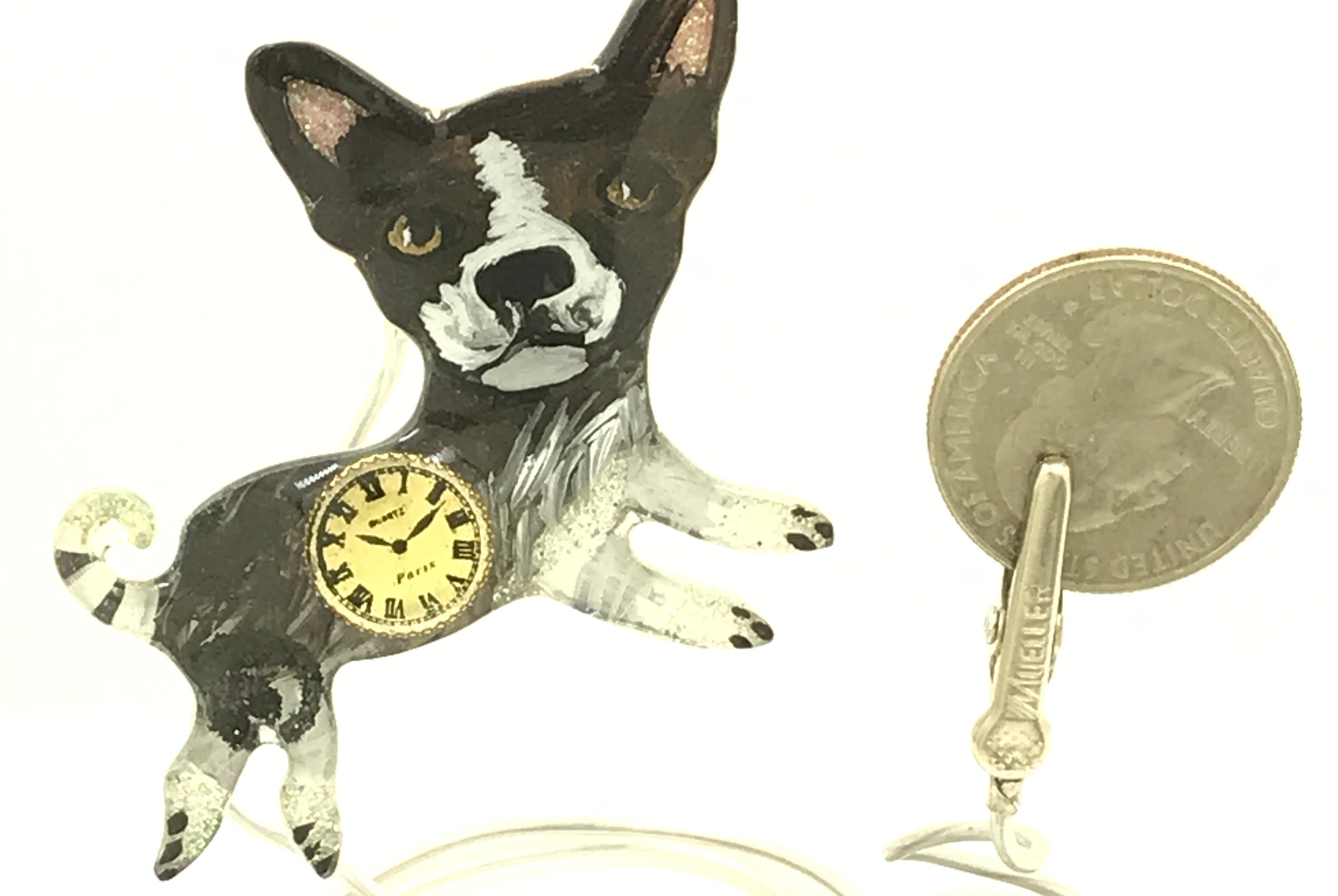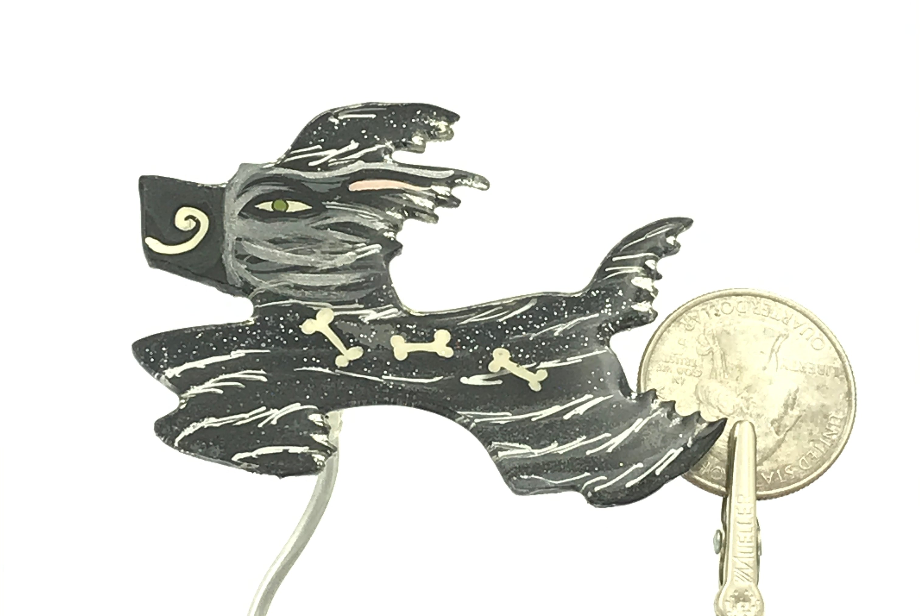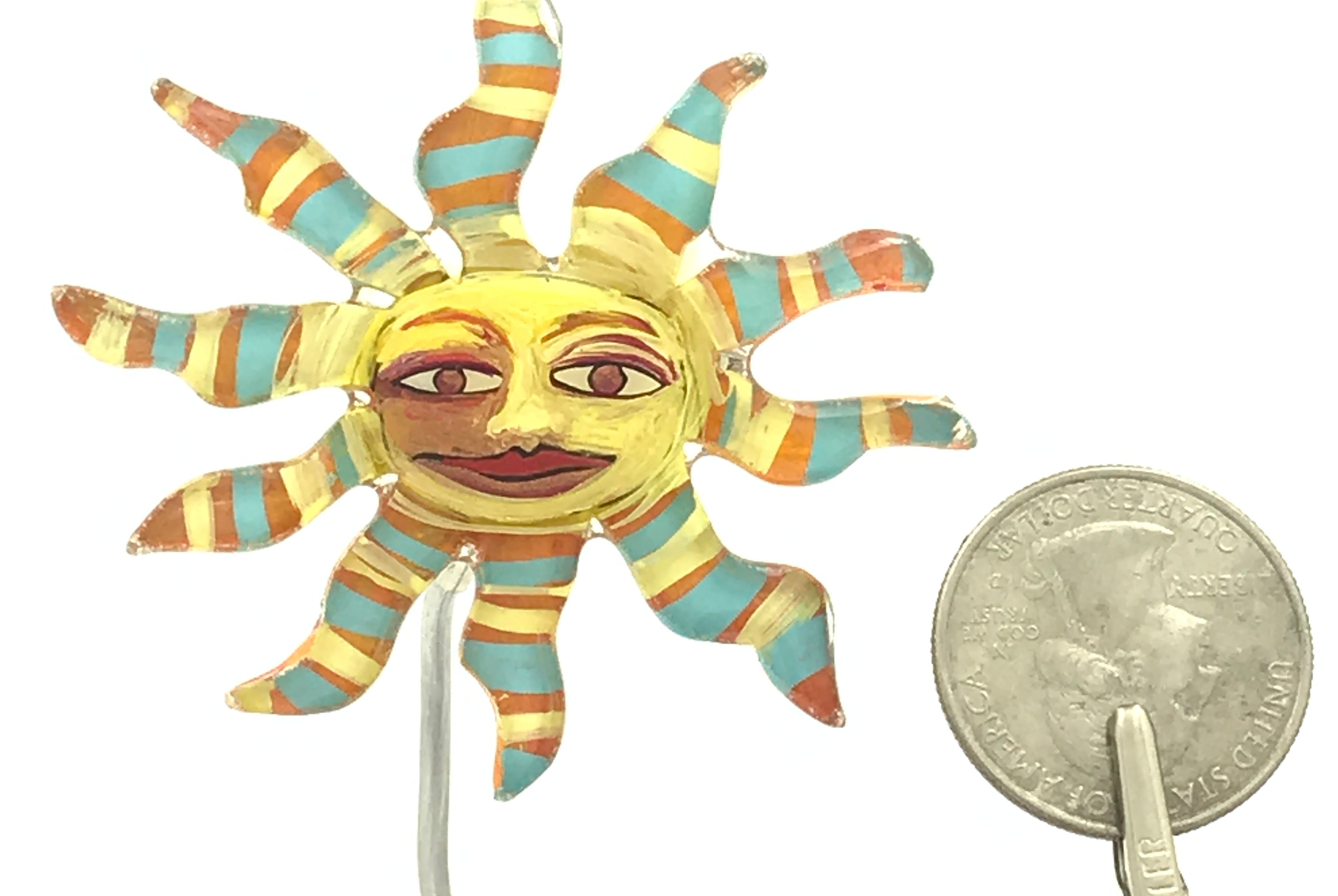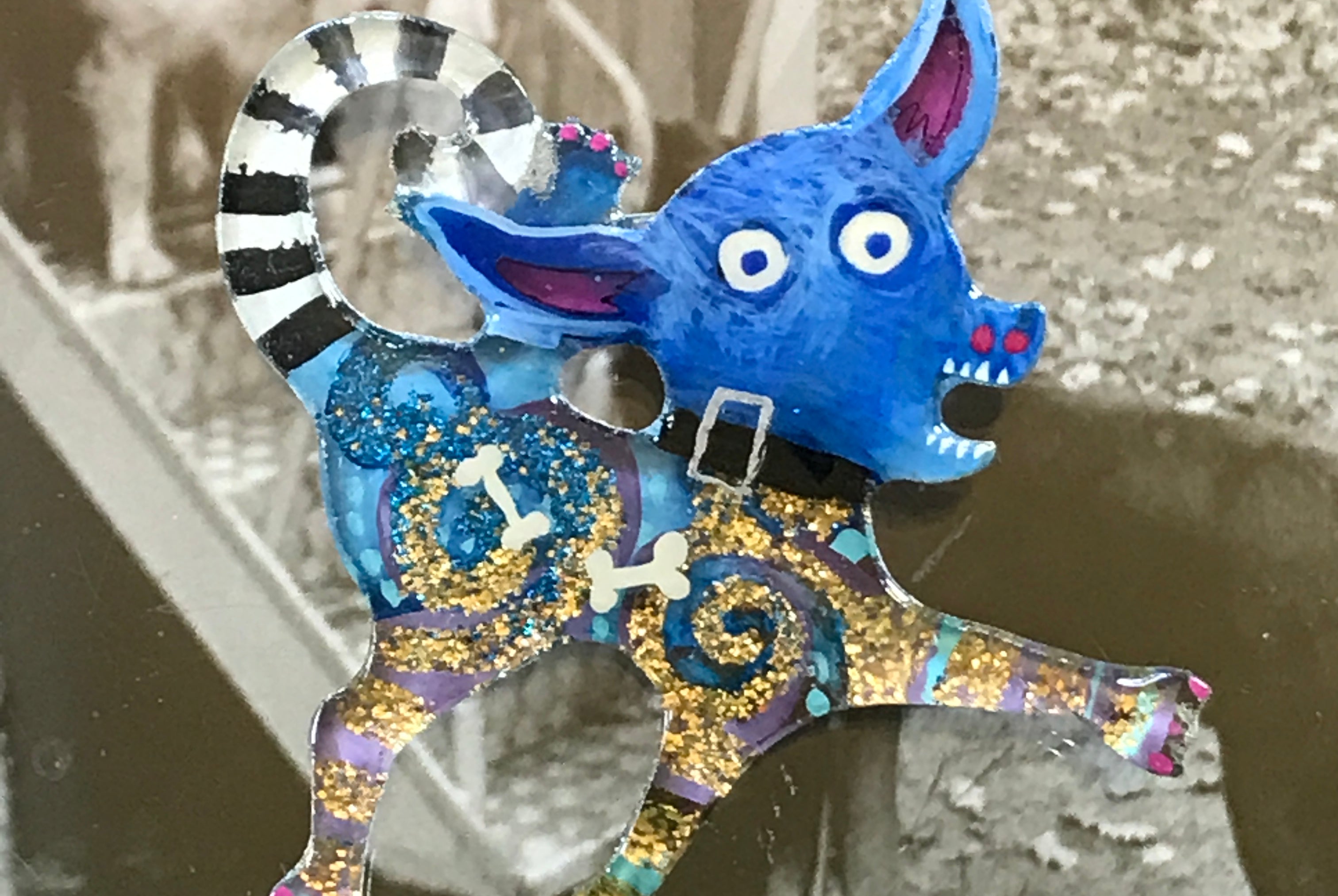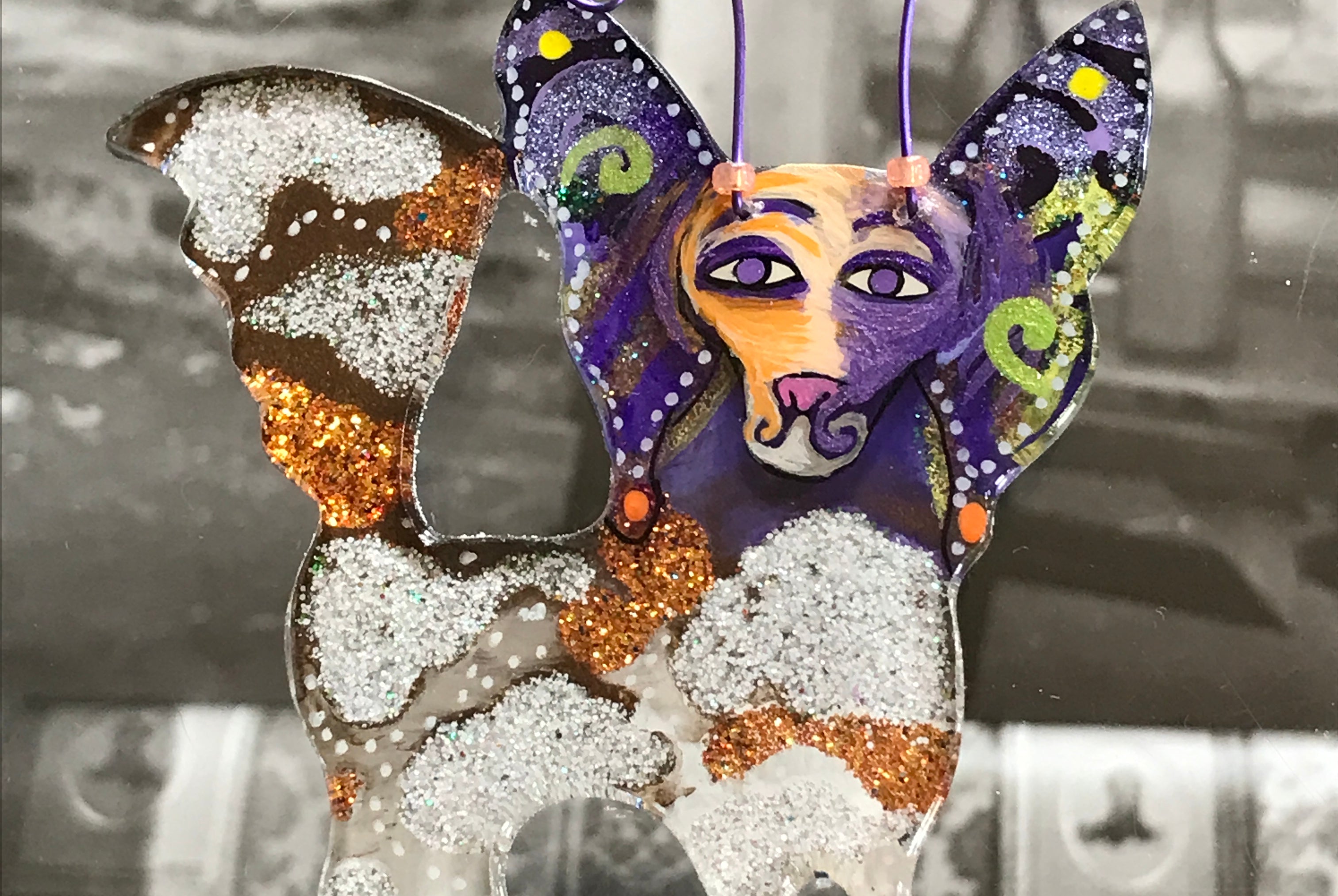 For me, these are little paintings that you can wear. If you are thinking of shrinky-dinks, I'm sure that was in my mind when I came up with lasercutting the shapes and then painting with the same paints I use on canvas. It's a multi layered process that takes a long time. The painting takes the longest, but it is the most rewarding. They are coated with a thick and sturdy glaze that brings out the depth and color.