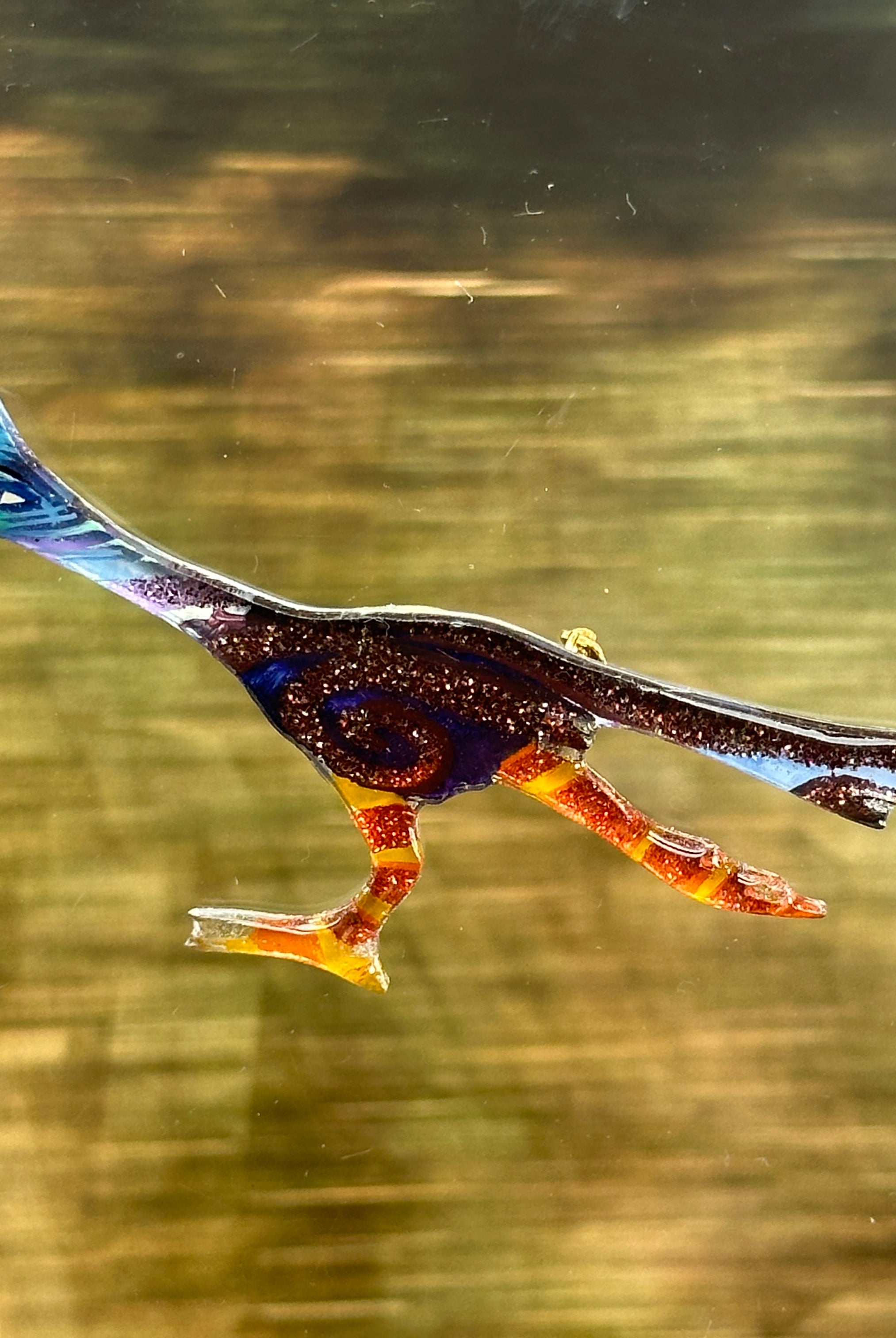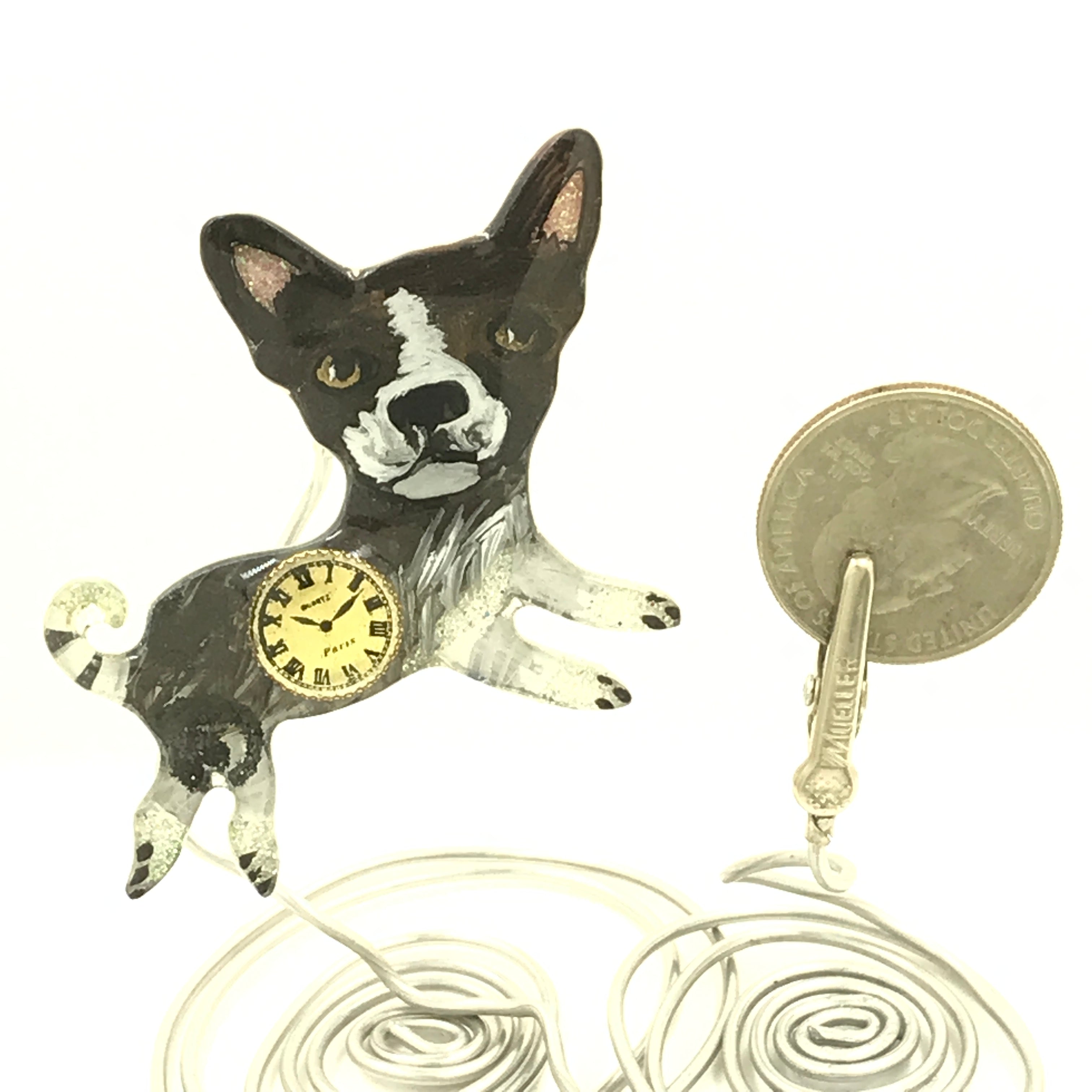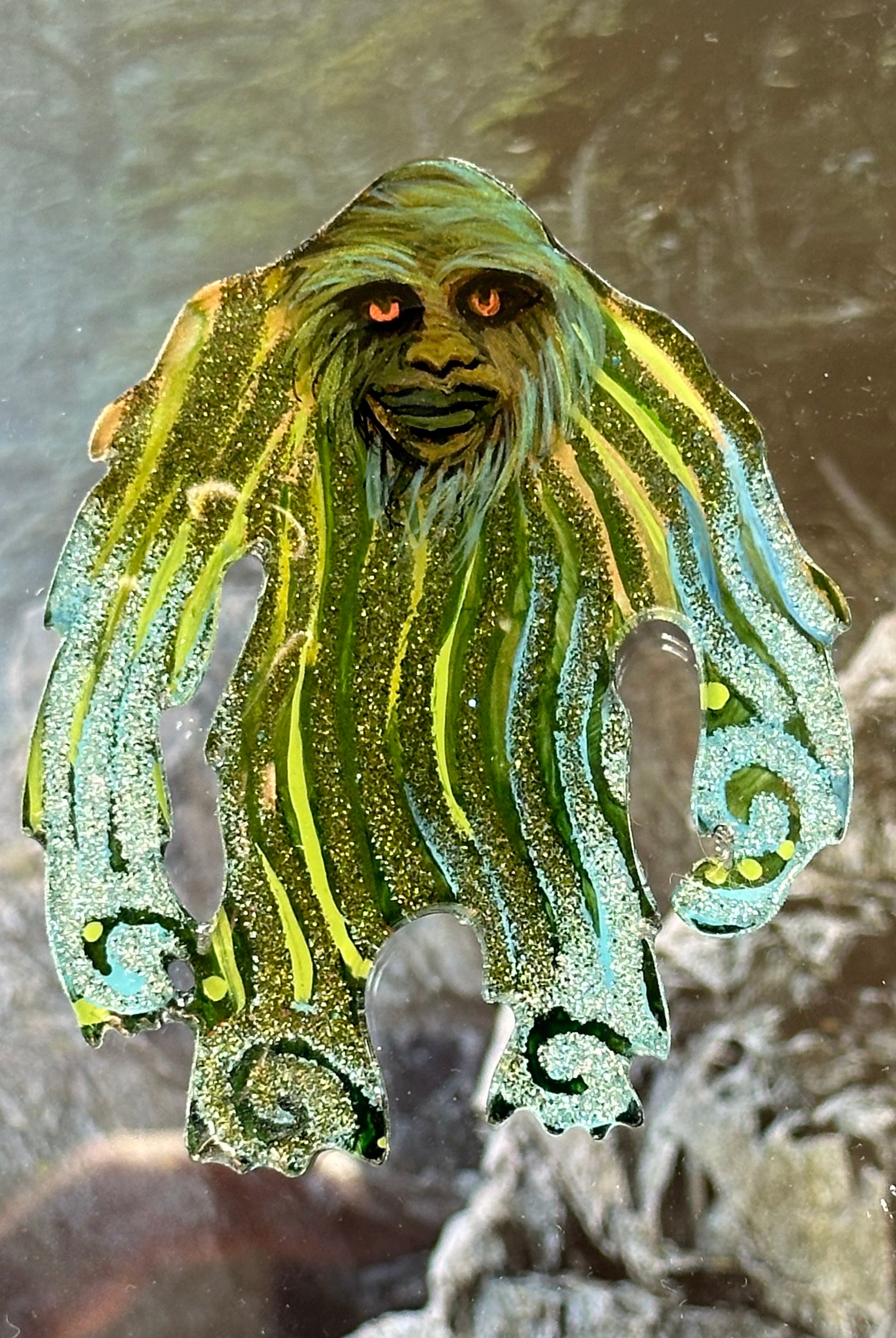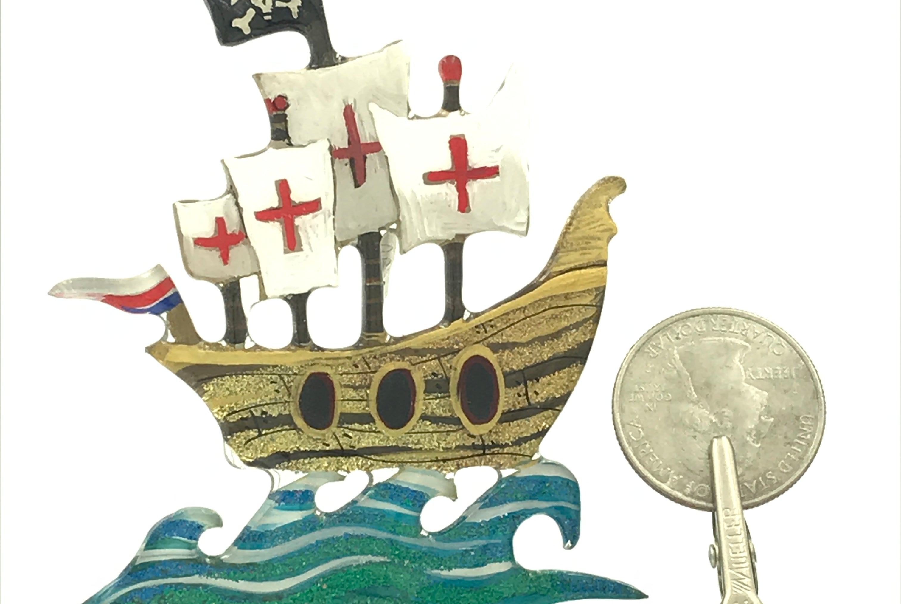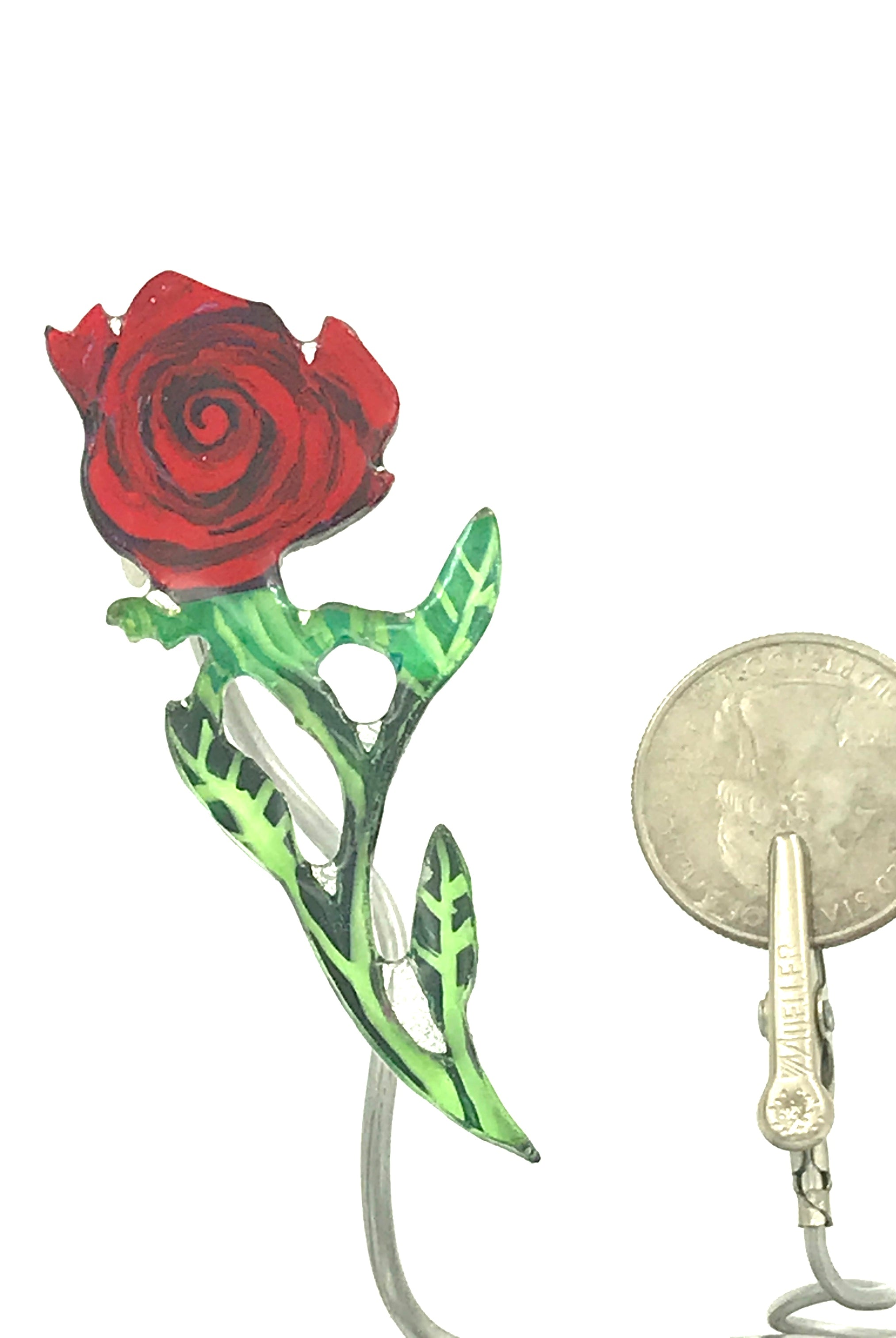 For me, these are little paintings that you can wear. If you are thinking of shrinky-dinks, I'm sure that was in my mind when I came up with lasercutting the shapes and then painting with the same paints I use on canvas. It's a multi layered process that takes a long time. The painting takes the longest, but it is the most rewarding. They are coated with a thick and sturdy glaze that brings out the depth and color.