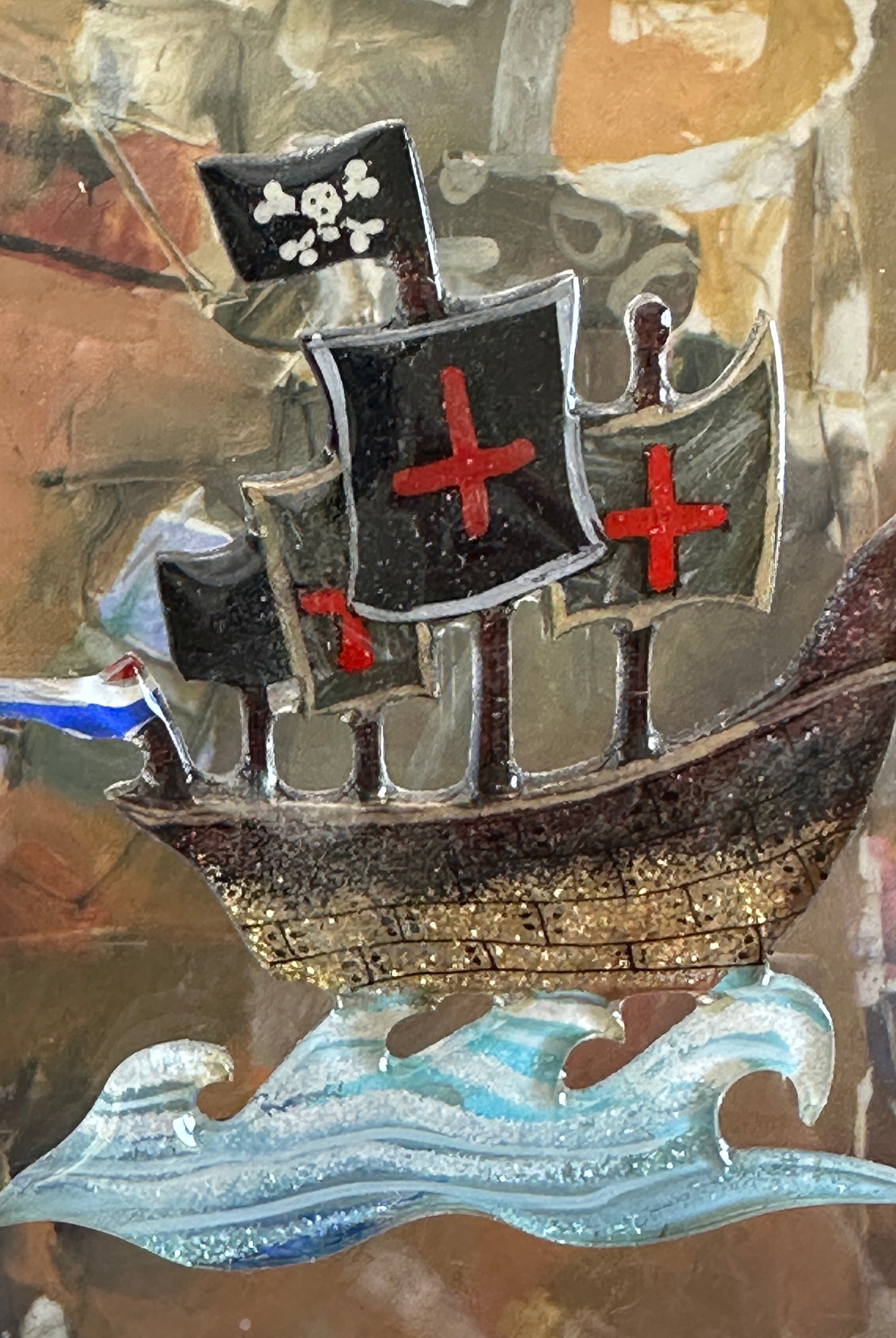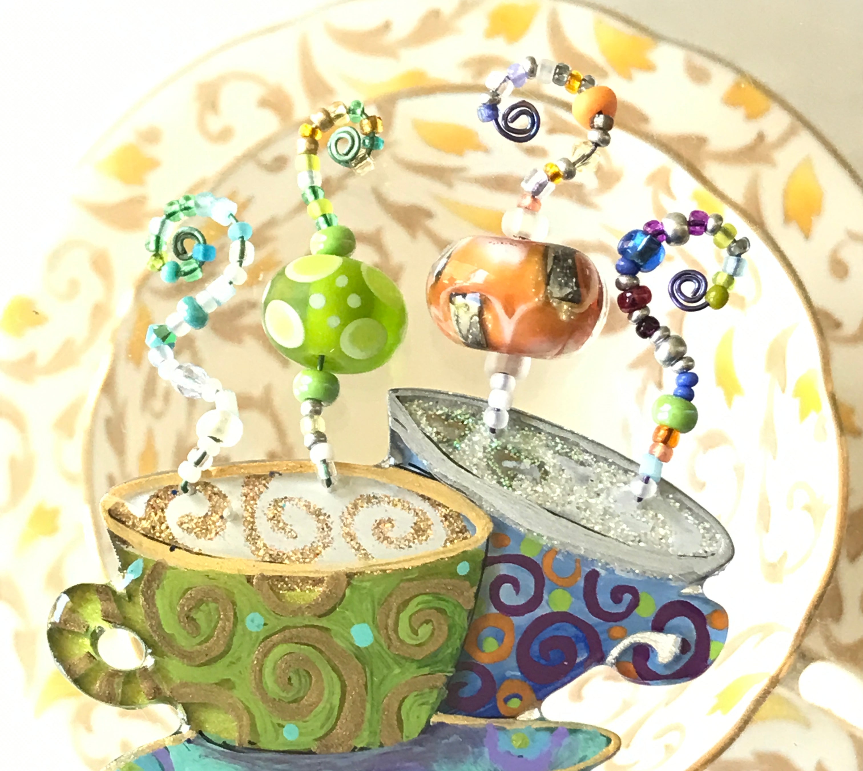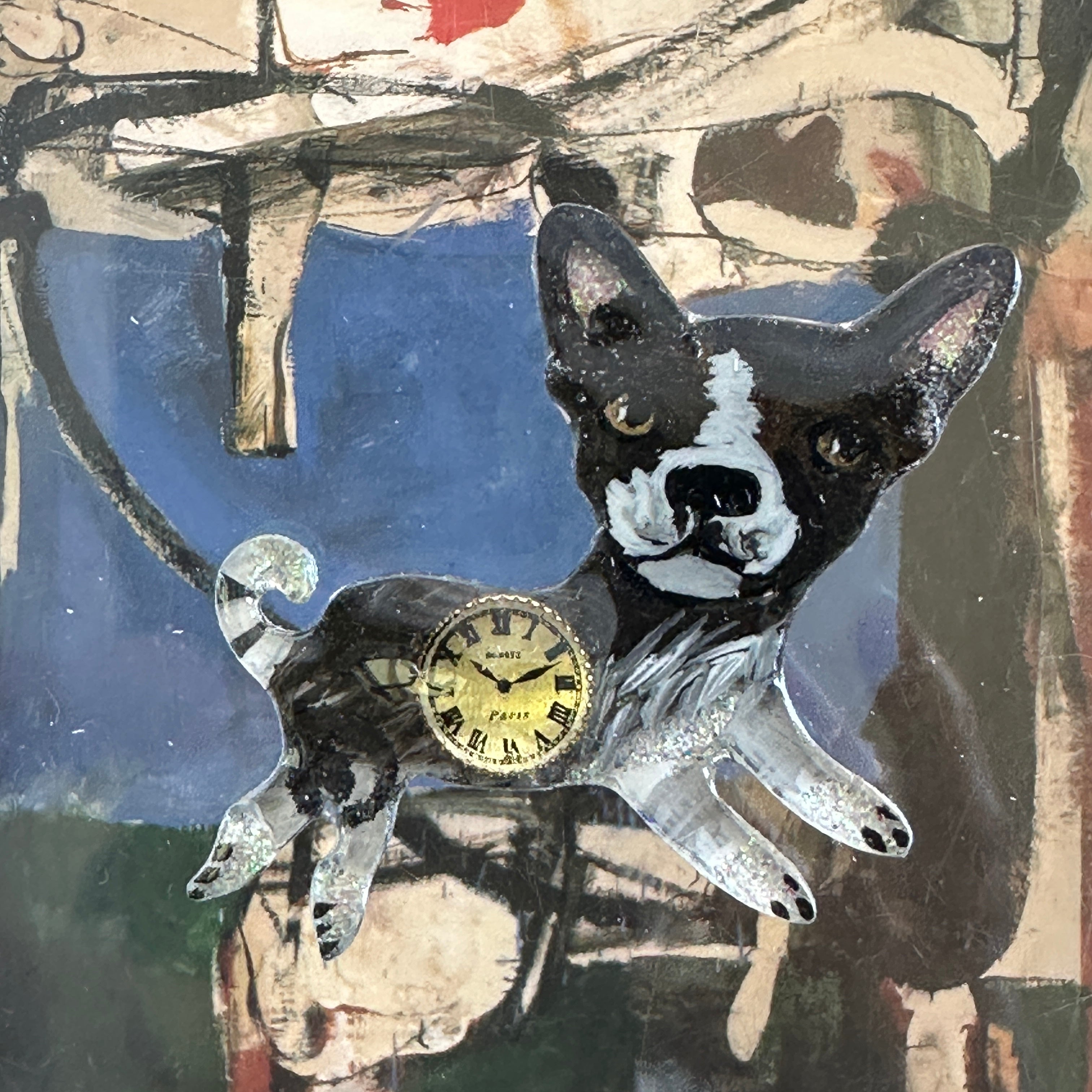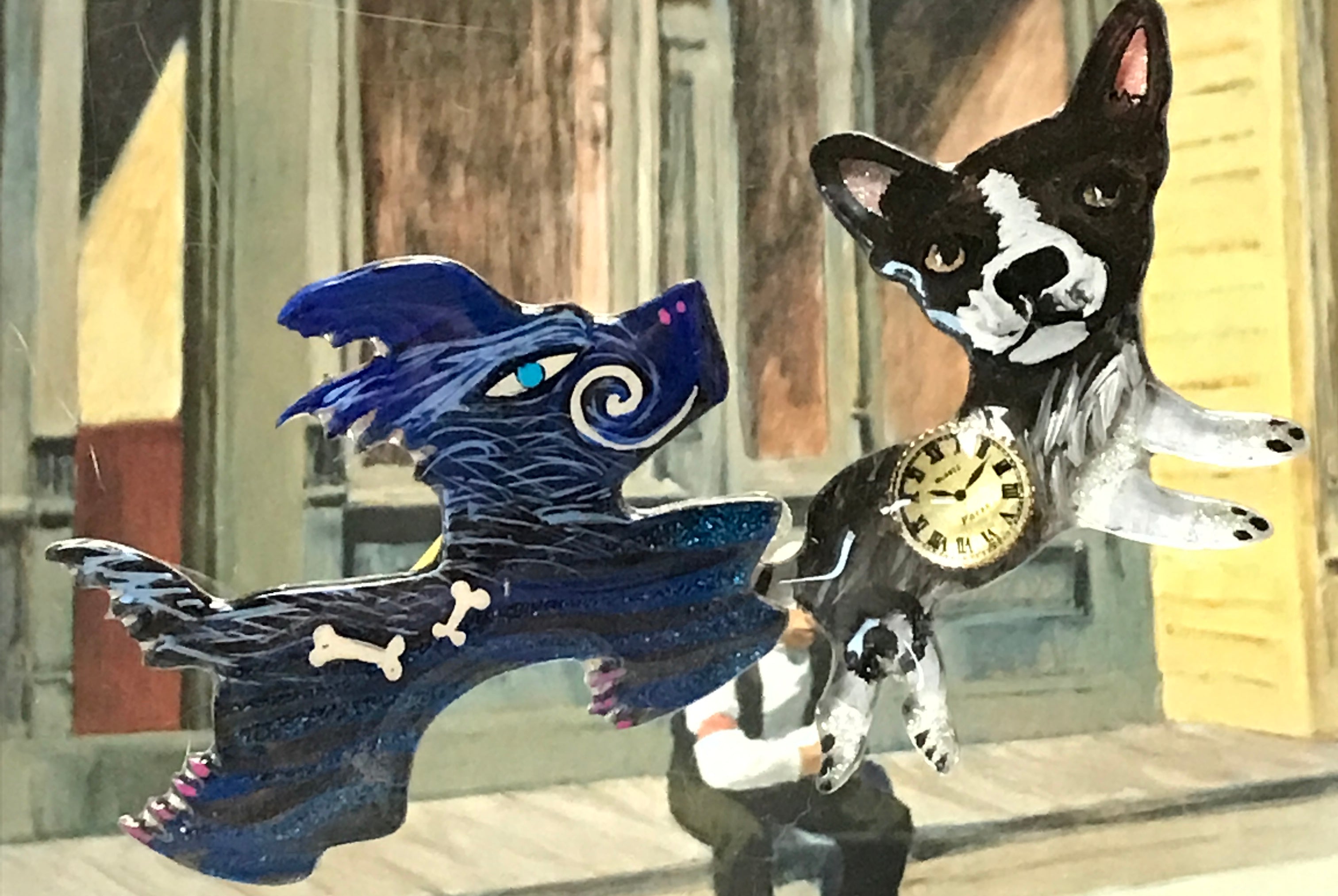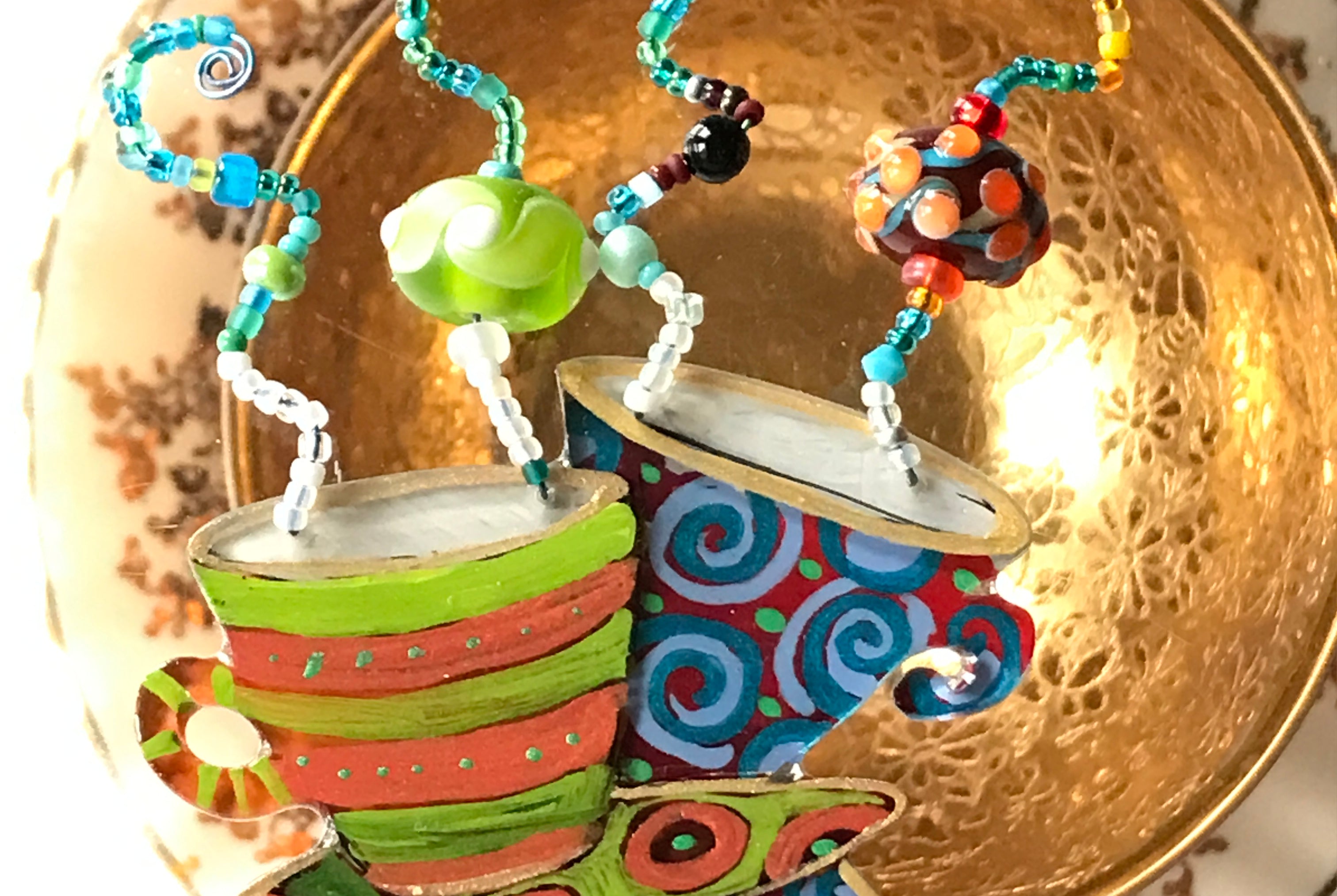 For me, these are little paintings that you can wear. If you are thinking of shrinky-dinks, I'm sure that was in my mind when I came up with lasercutting the shapes and then painting with the same paints I use on canvas. It's a multi layered process that takes a long time. The painting takes the longest, but it is the most rewarding. They are coated with a thick and sturdy glaze that brings out the depth and color.