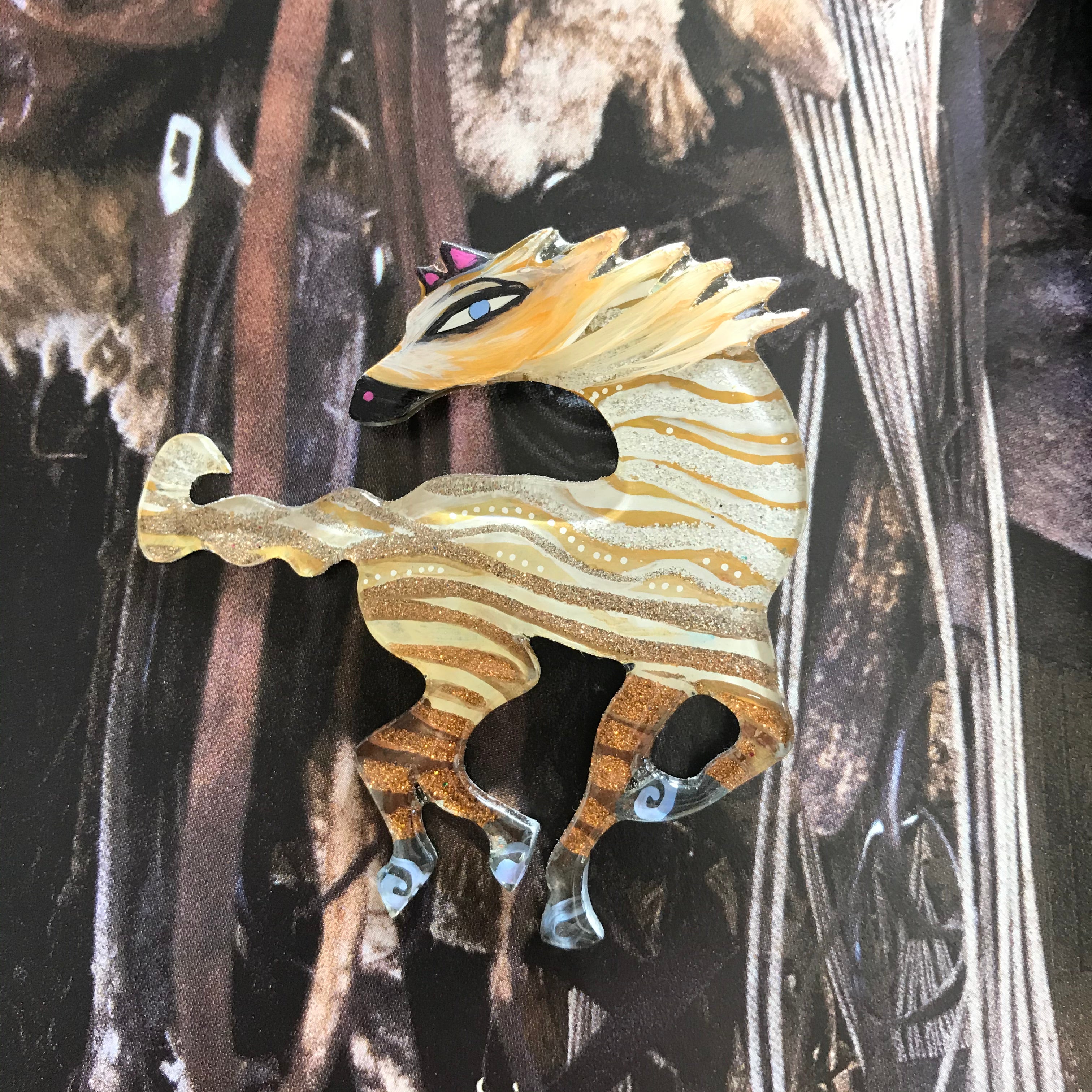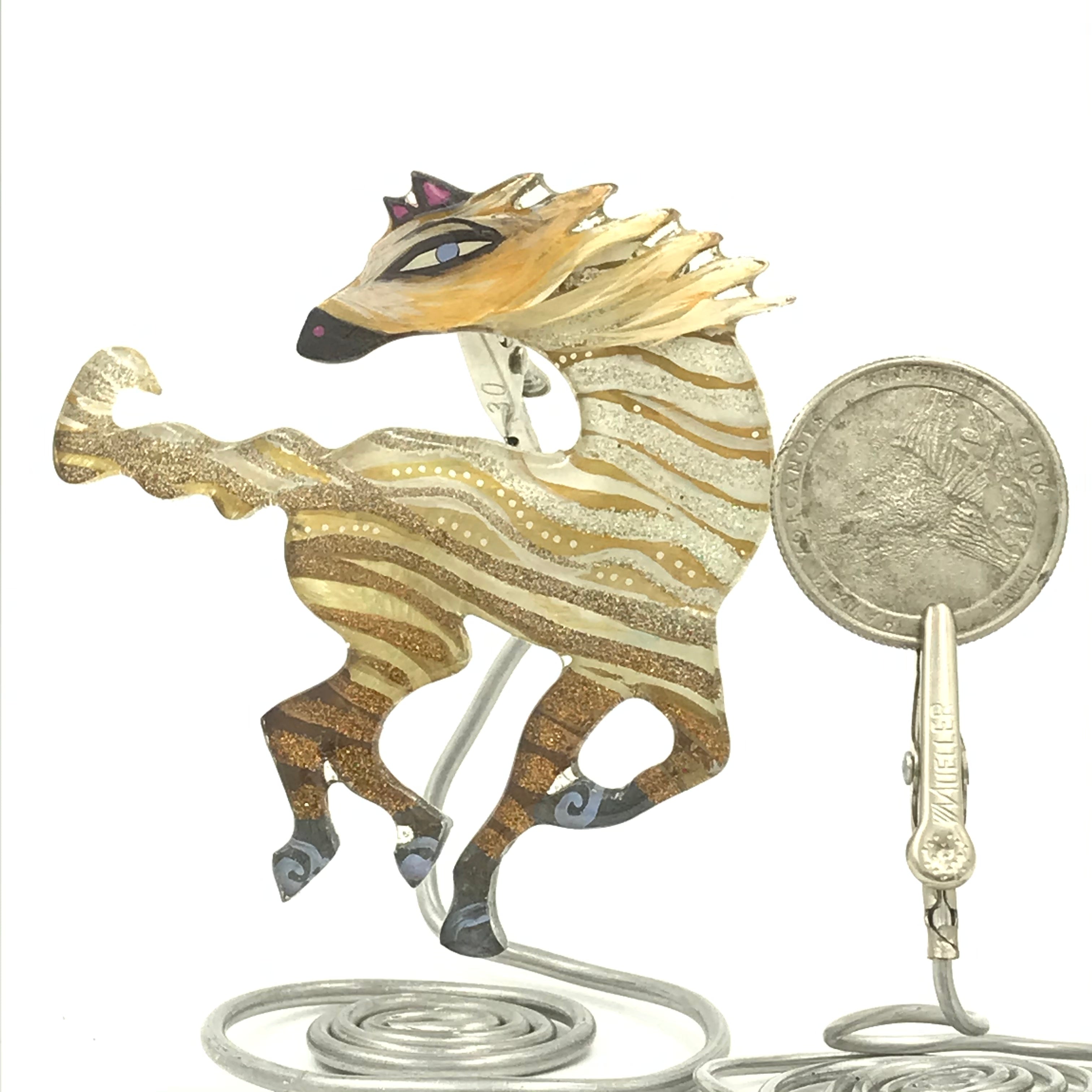 If you are pin challenged, you can have a complimentary stand that will clip on the pinback, just indicate in your special instructions. It’s a little work of art, there are lots of ways to display it.