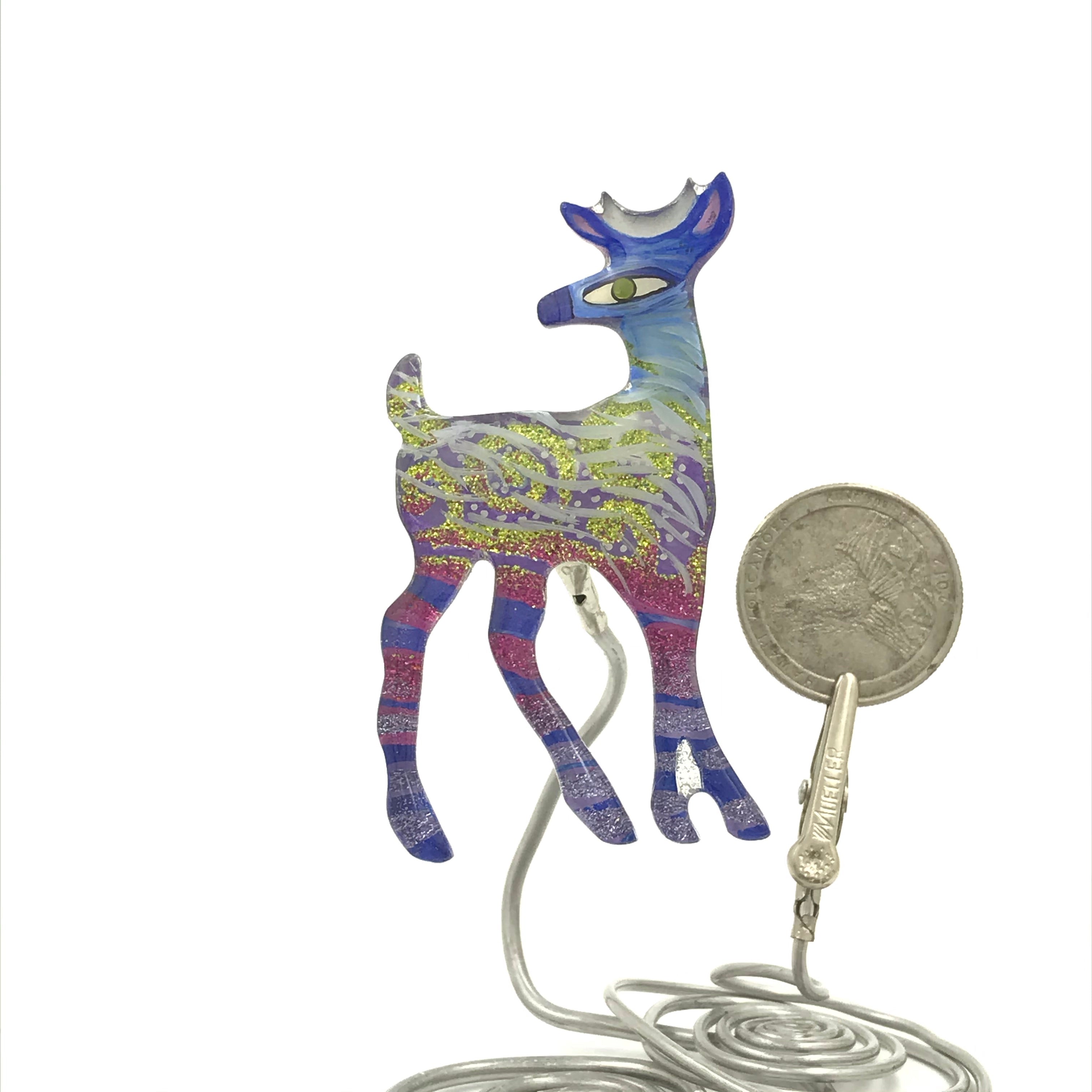 If you are pin challenged, you can have a complimentary stand that will clip on the pinback, just indicate in a note. It’s a little work of art, there are lots of ways to display it.
