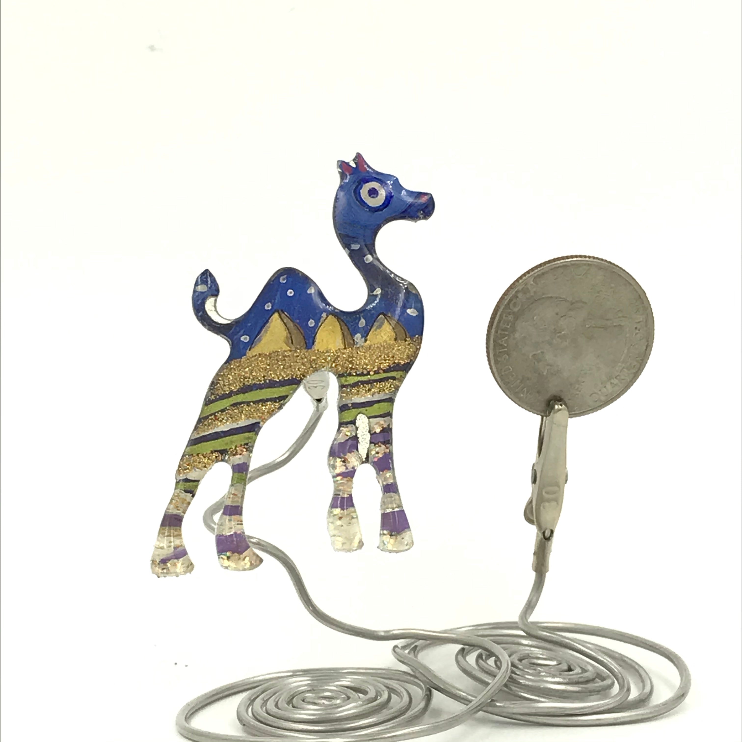 If you are pin challenged, you can have a complimentary stand that will clip on the pinback, just indicate in your special instructions. It’s a little work of art, there are lots of ways to display it.