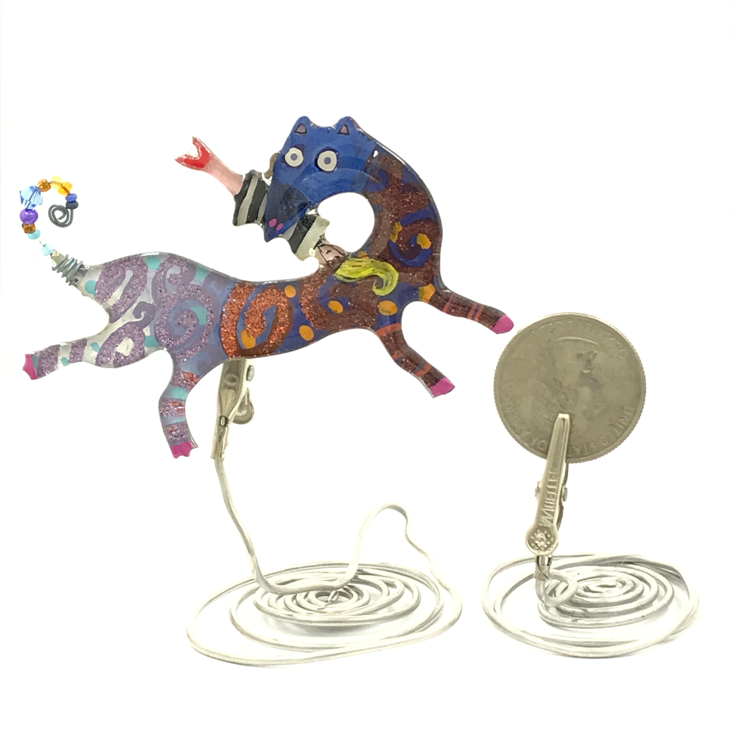 If you are pin challenged, you can have a complimentary stand that will clip on the pinback, just indicate in your special instructions. It’s a little work of art, there are lots of ways to display it.