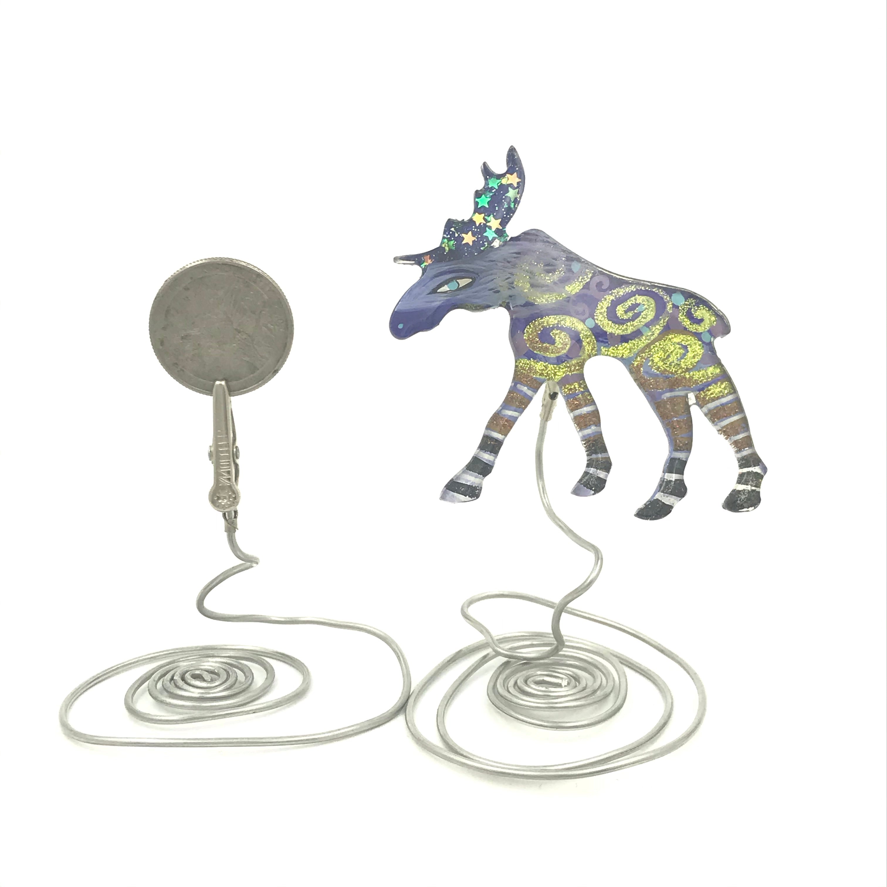 If you are pin challenged, you can have a complimentary stand that will clip on the pinback, just indicate in your special instructions. It’s a little work of art, there are lots of ways to display it.