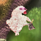 If you are pin challenged, you can have a complimentary stand that will clip on the pinback, just indicate in your special instructions. It’s a little work of art, there are lots of ways to display it.