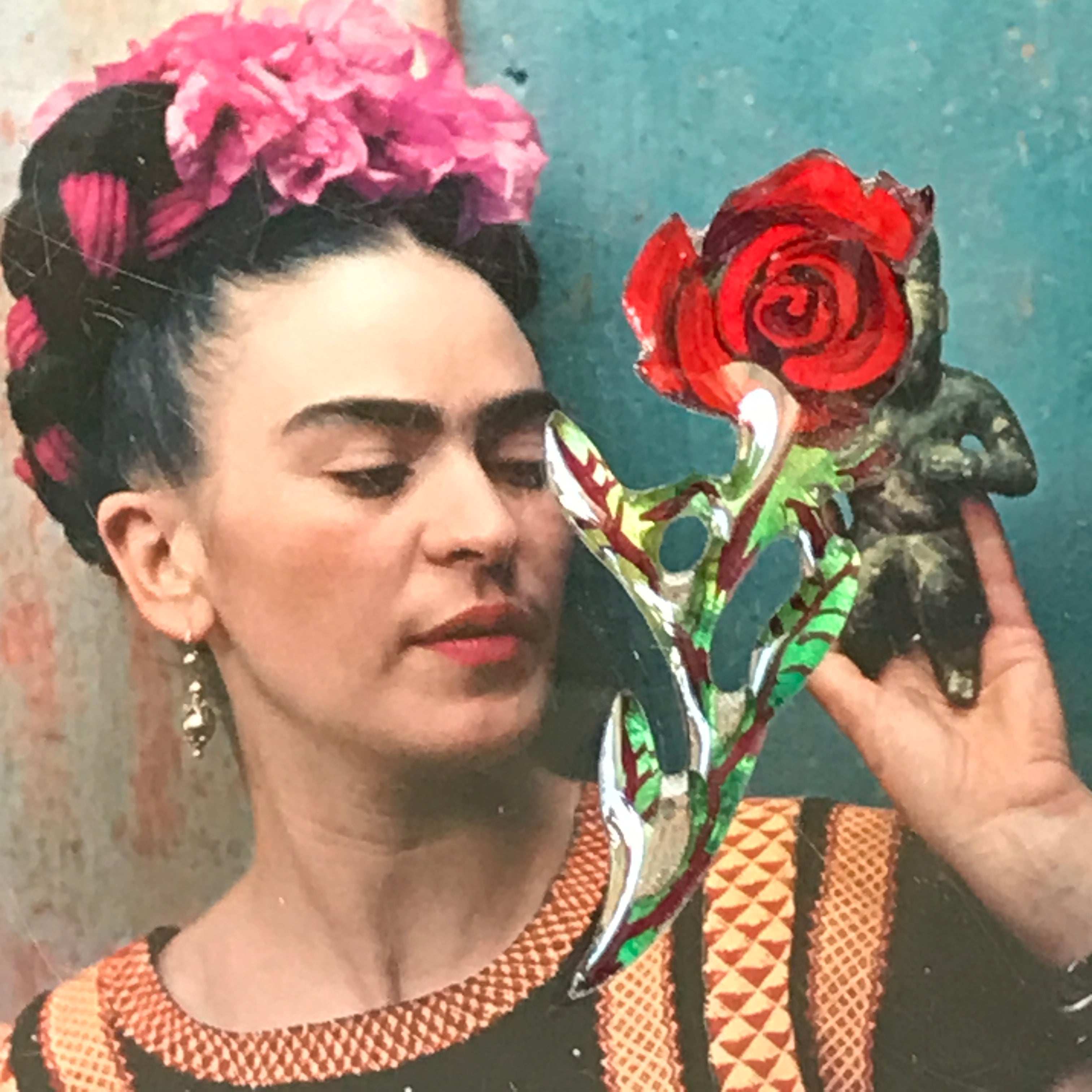 If you are pin challenged, you can have a complimentary stand that will clip on the pinback, just indicate in your special instructions. It’s a little work of art, there are lots of ways to display it.