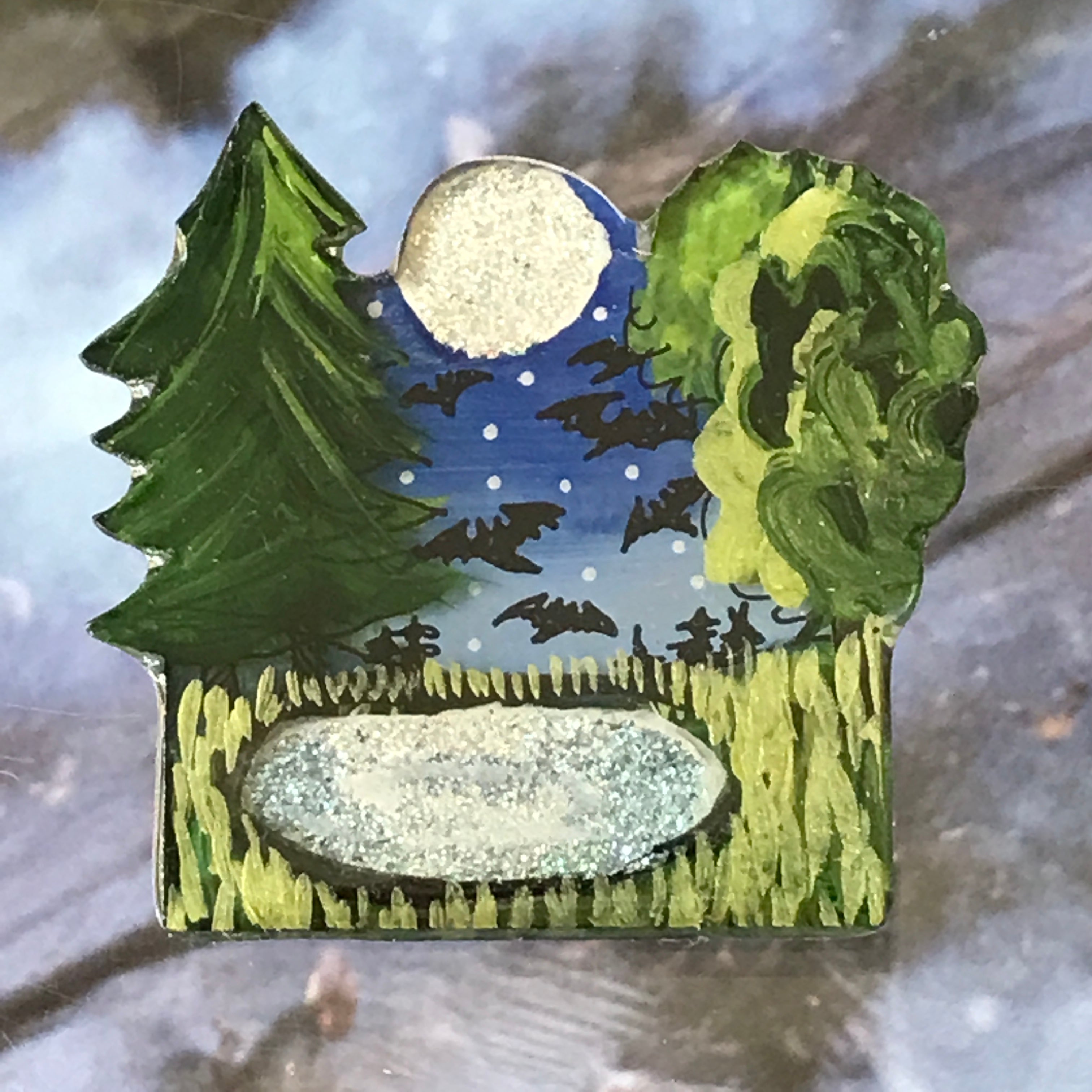 Each one of these whimsical pins and earrings are handpainted by me, Robin Senour, so there are no two alike.