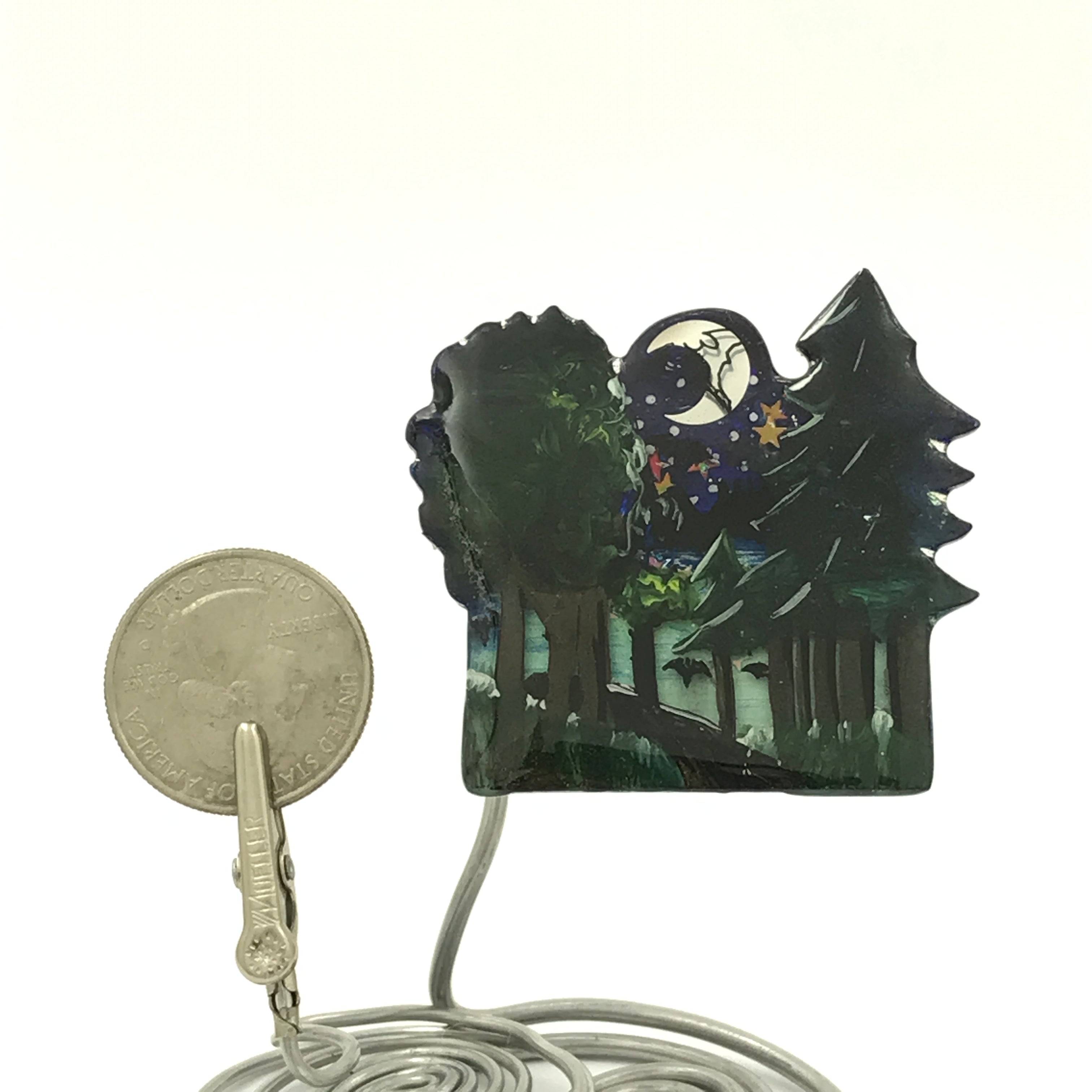 If you are pin challenged, you can have a complimentary stand that will clip on the pinback, just indicate in the note field It’s a little work of art, there are lots of ways to display it.