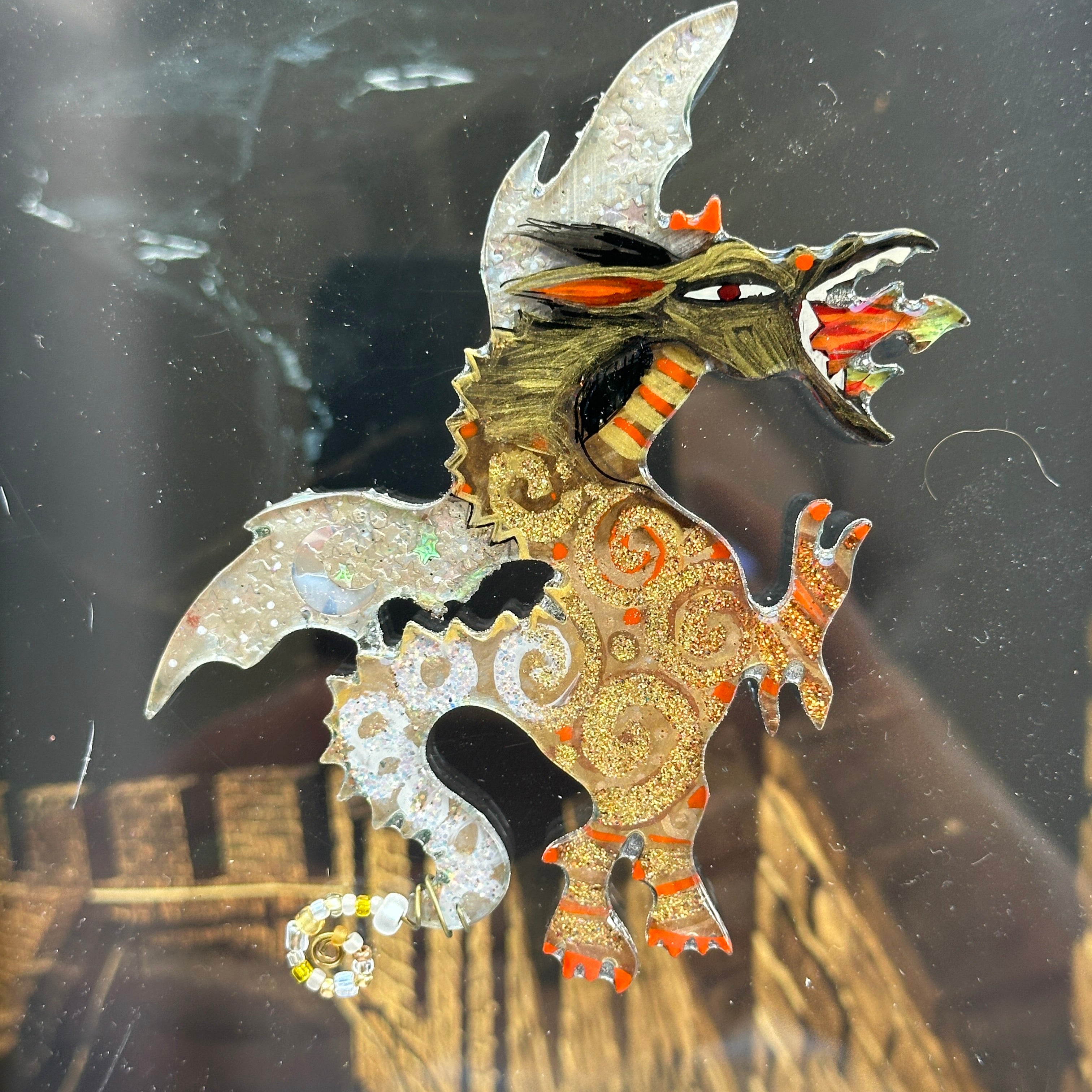 If you are pin challenged, you can have a complimentary stand that will clip on the pinback, just indicate in your special instructions. It’s a little work of art, there are lots of ways to display it.