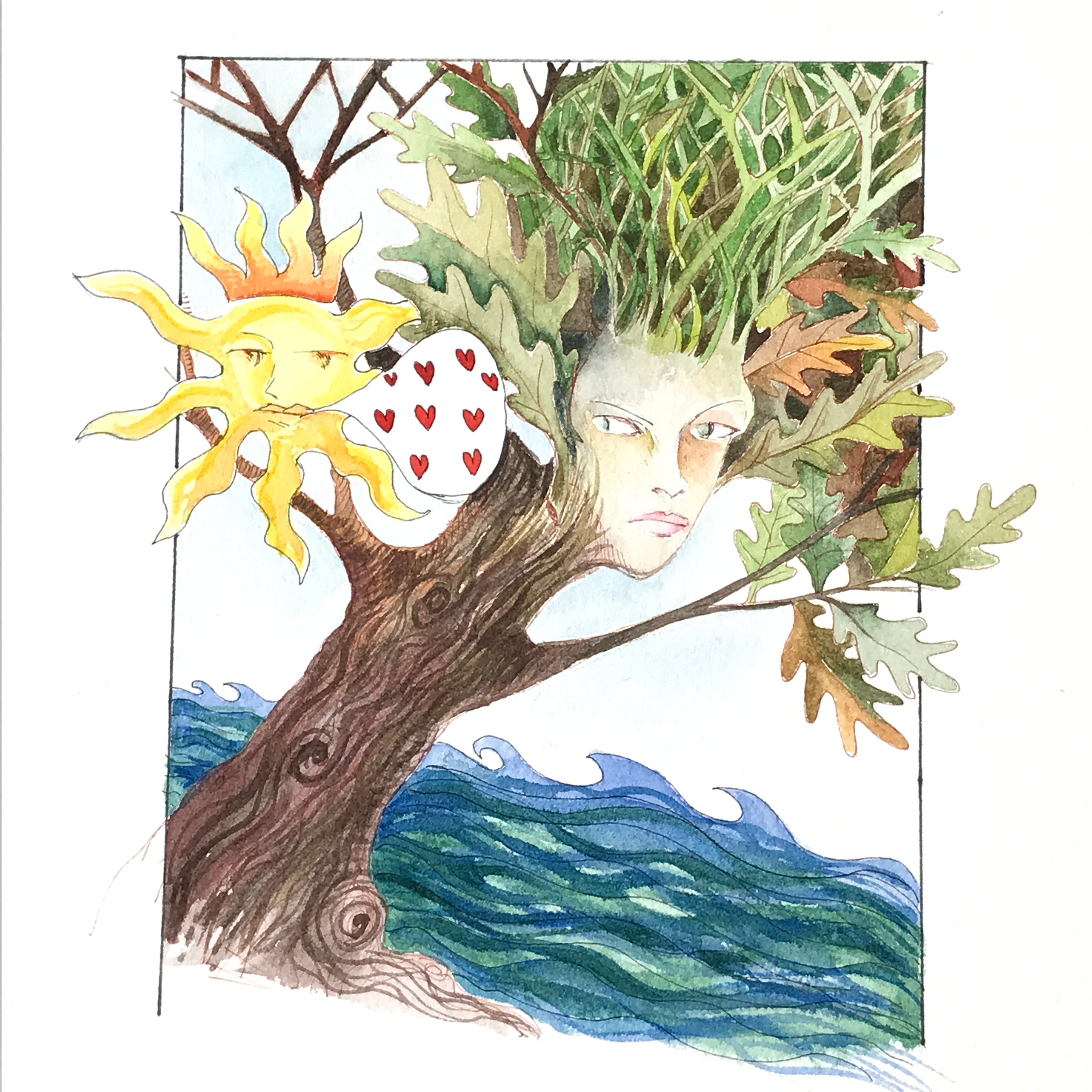 This is an original watercolor. It is painted with my favorite watercolors, a combination of Holbein and Daniel Smith colors. I also used a micron sepia pen and my trusty Rotring rapidograph. The paper is 300 lb arches paper, and measures 71/2 by 61/2 inches. It is unframed.
