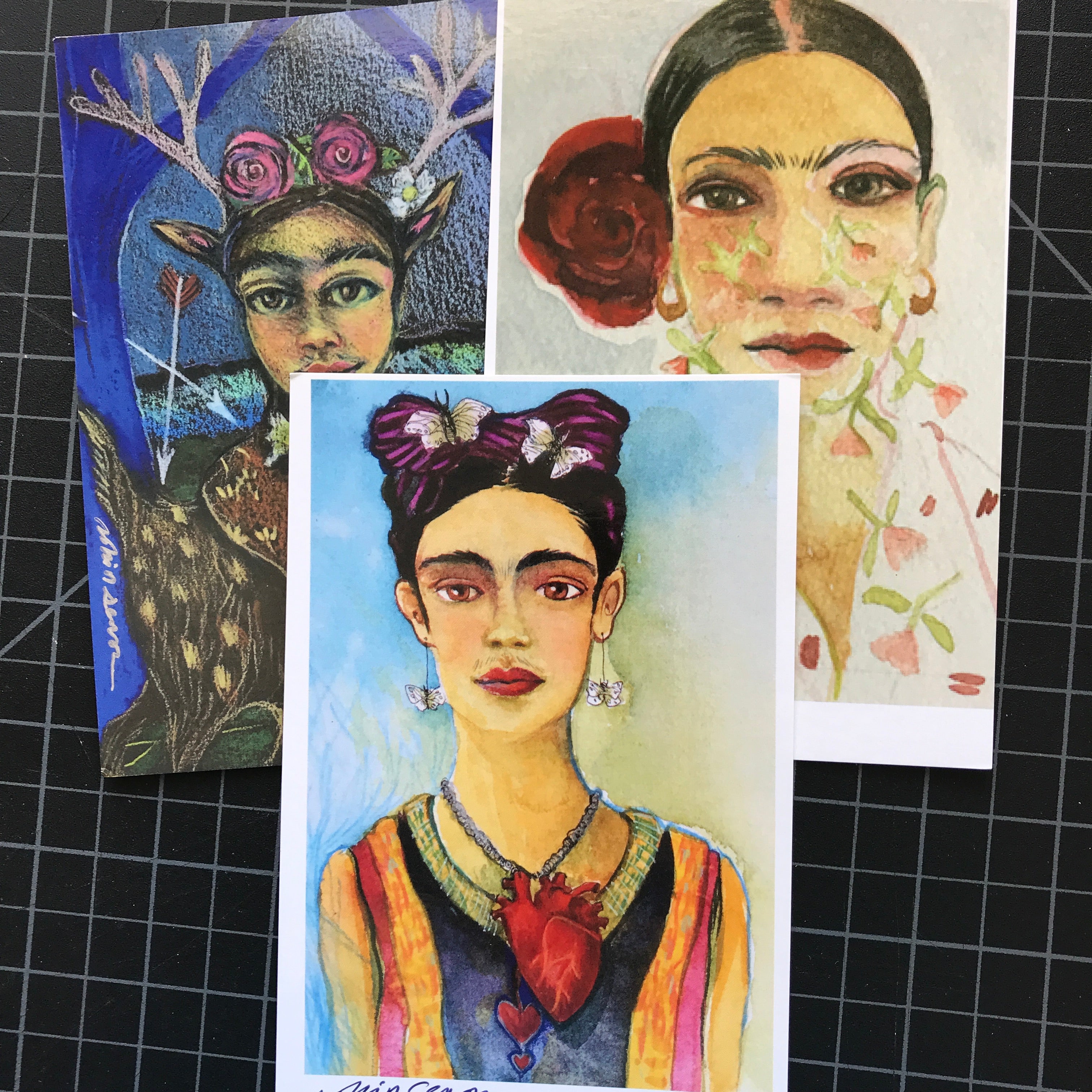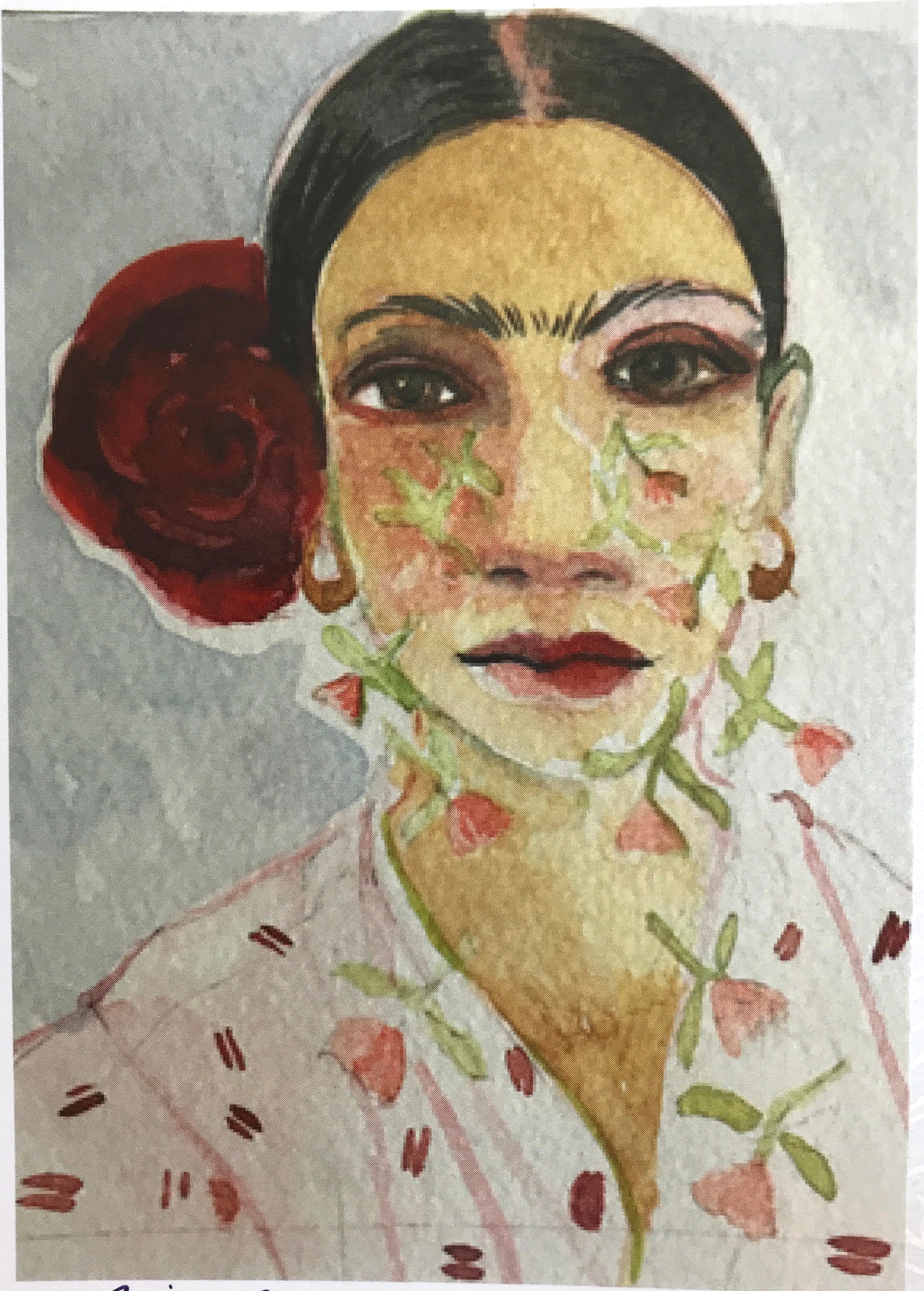 I painted Frida with butterflies in her hair with watercolors and colored pencil. A woman of change and adaptation, and a gift for true beauty in the darkest of times.