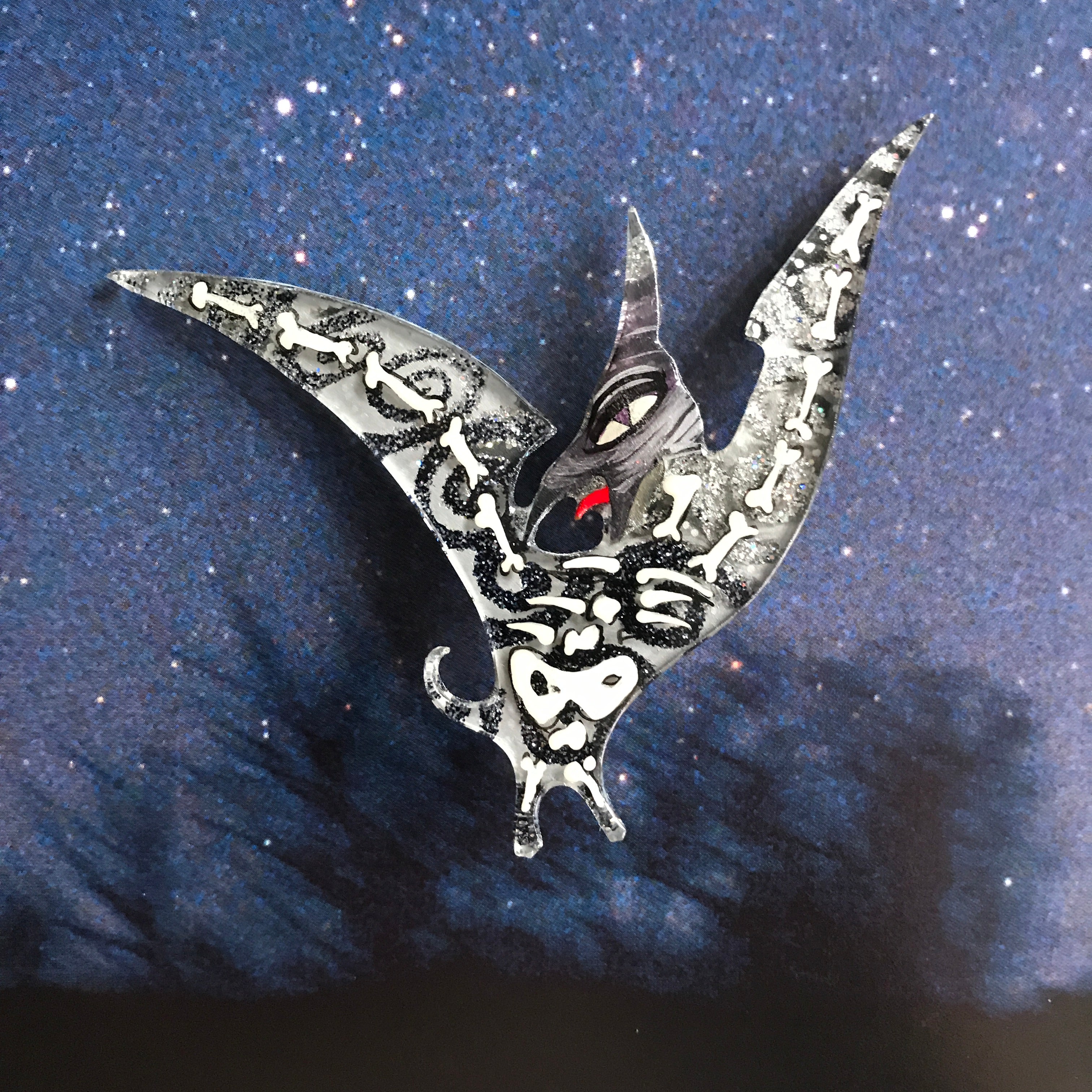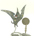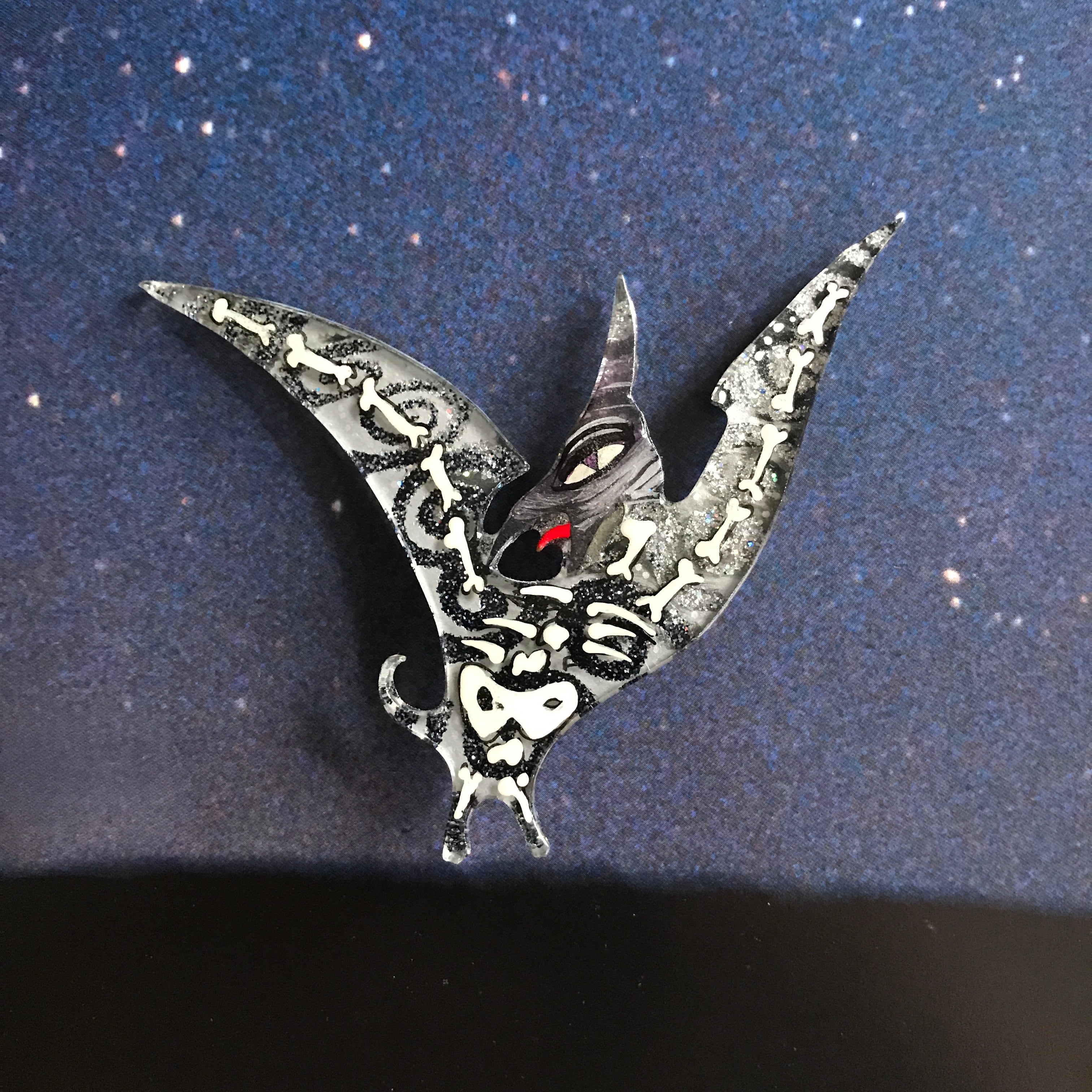 If you are pin challenged, you can have a complimentary stand that will clip on the pinback, just indicate in the note section. It’s a little work of art, there are lots of ways to display it.