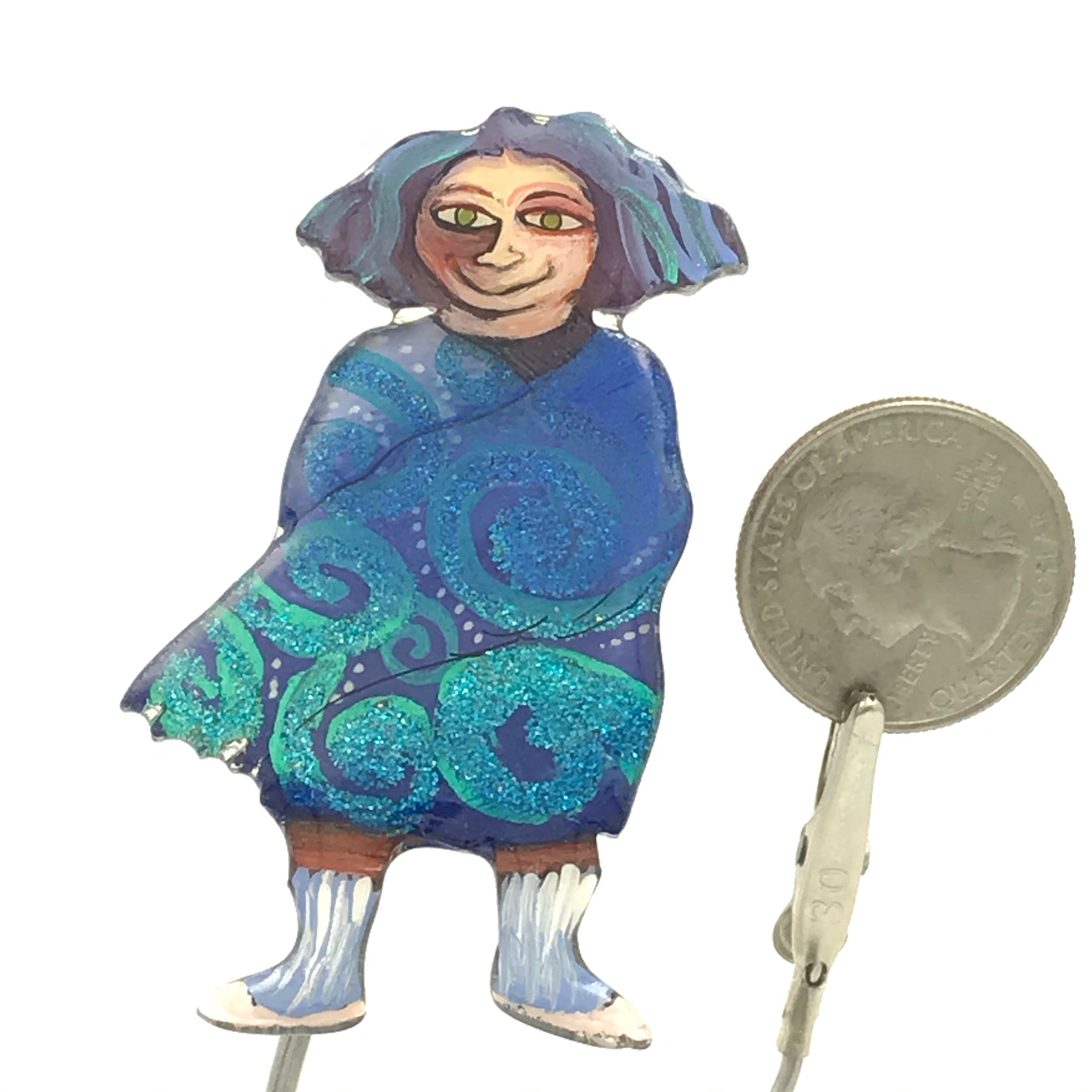 If you are pin challenged, you can have a complimentary stand that will clip on the pinback, just indicate in your special instructions. It’s a little work of art, there are lots of ways to display it.