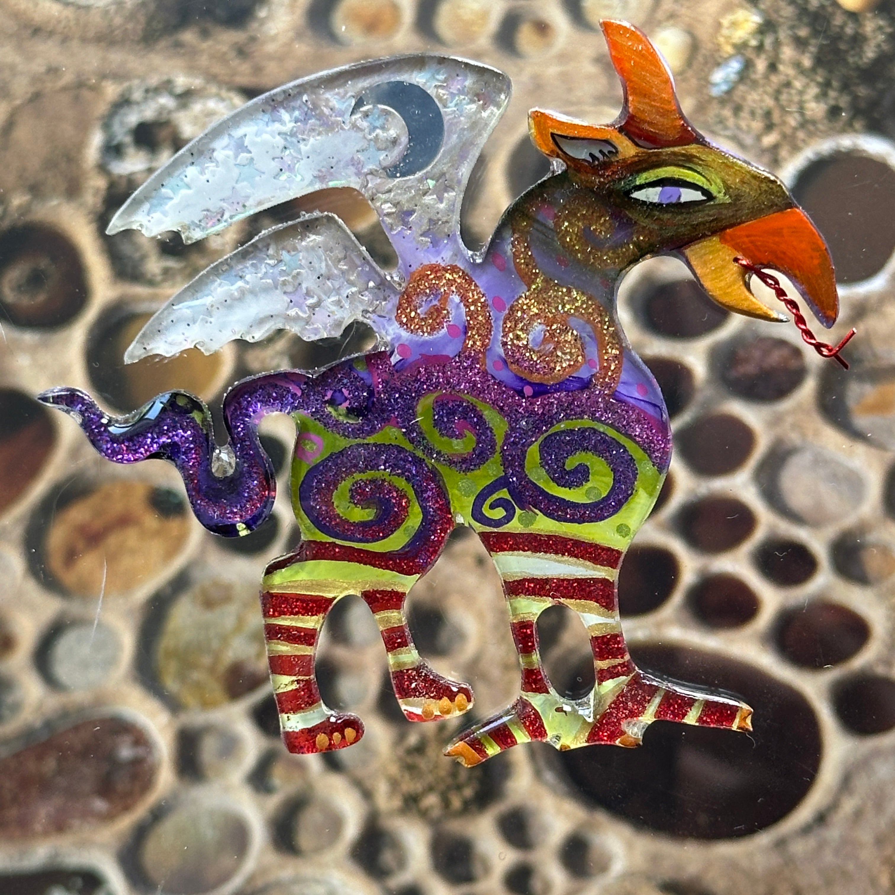 Each one of these whimsical pins and earrings are hand-painted by me, Robin Senour, so there are no two alike.