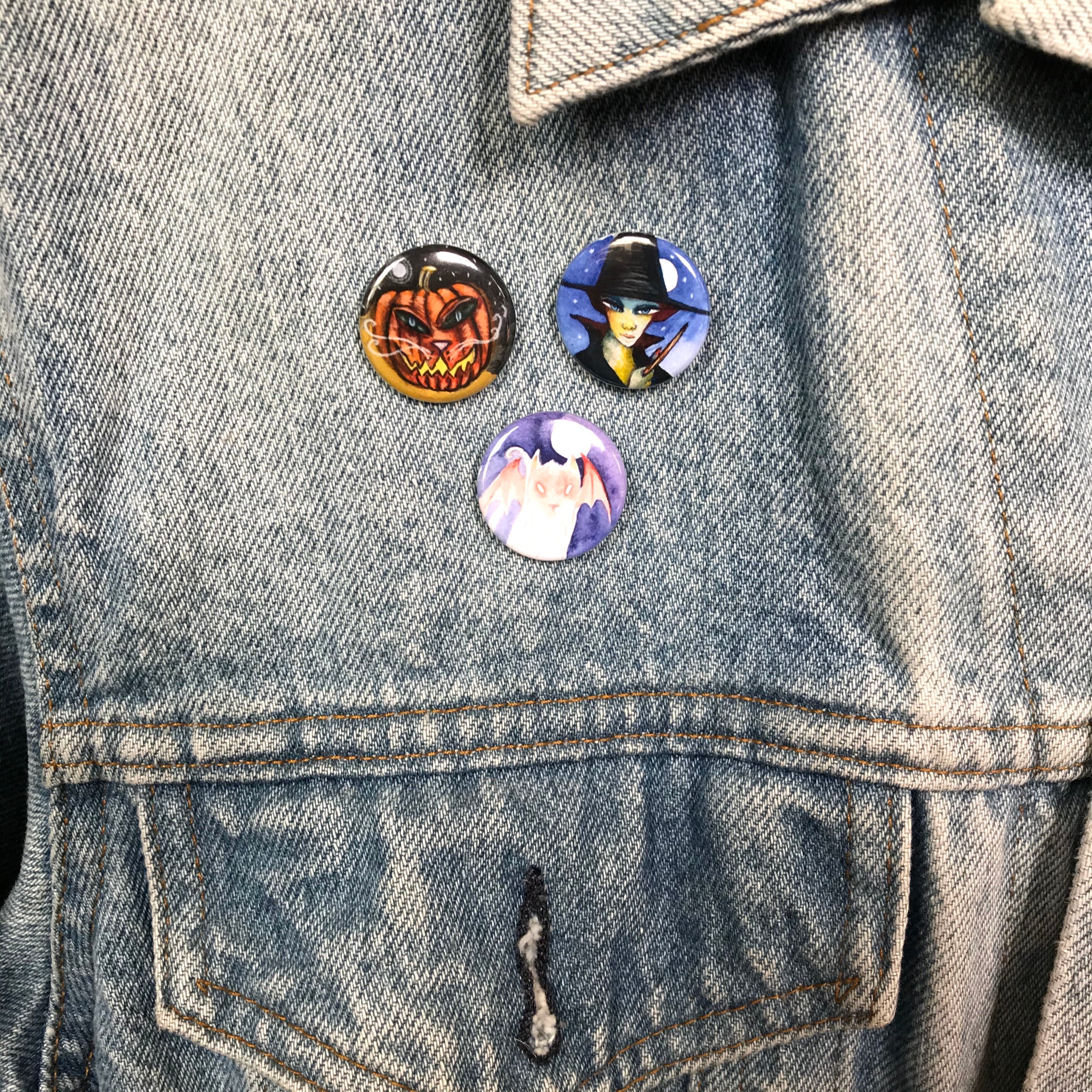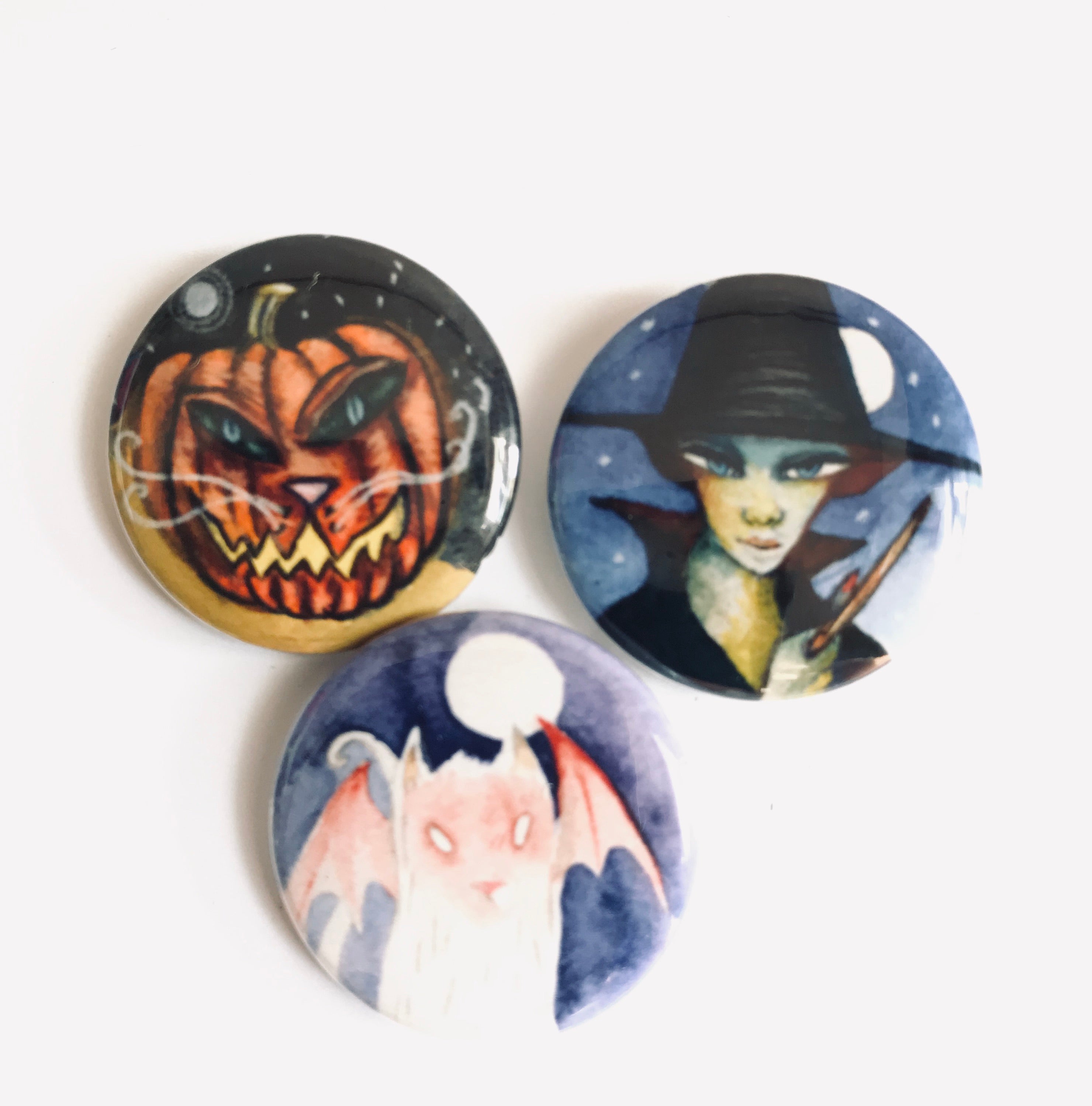 A cat pumpkin, a cat ghost, and a witch to wear for Halloween