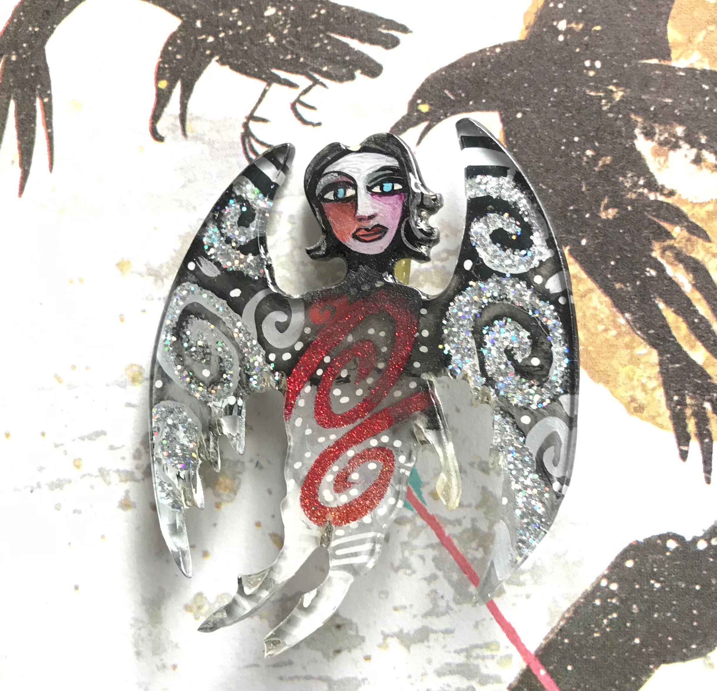 Each one of these whimsical pins and earrings are hand-painted by me, Robin Senour, so there are no two alike.