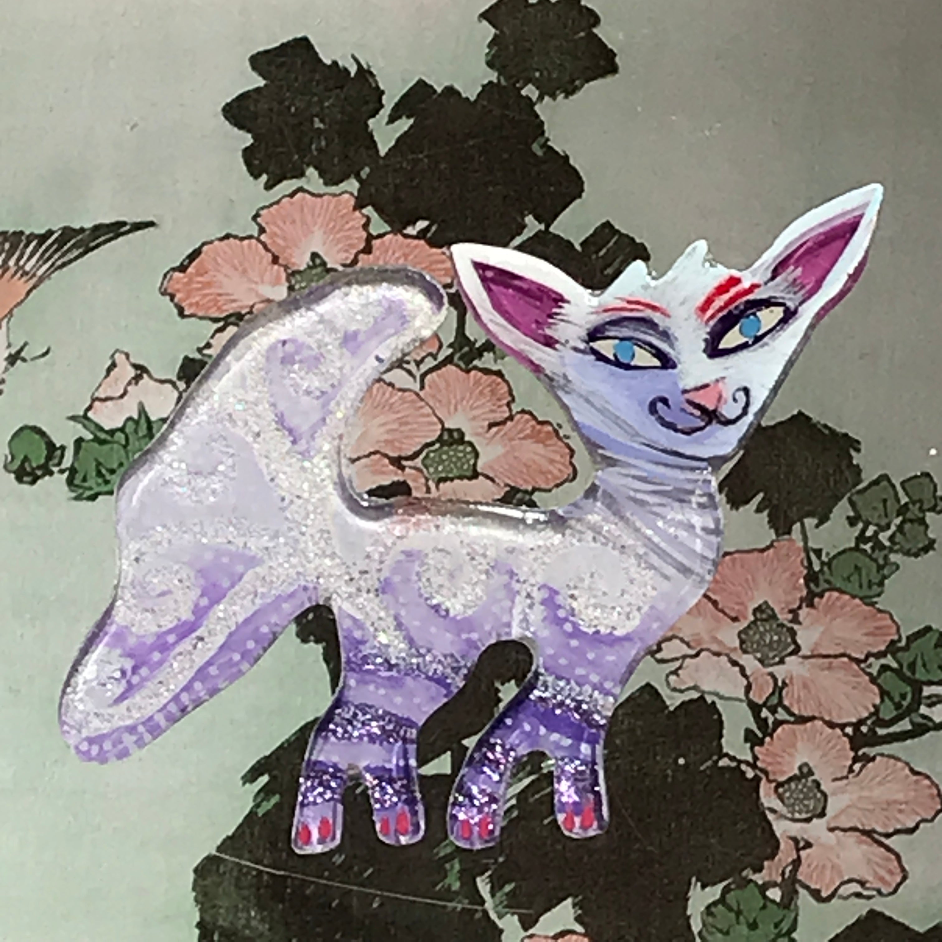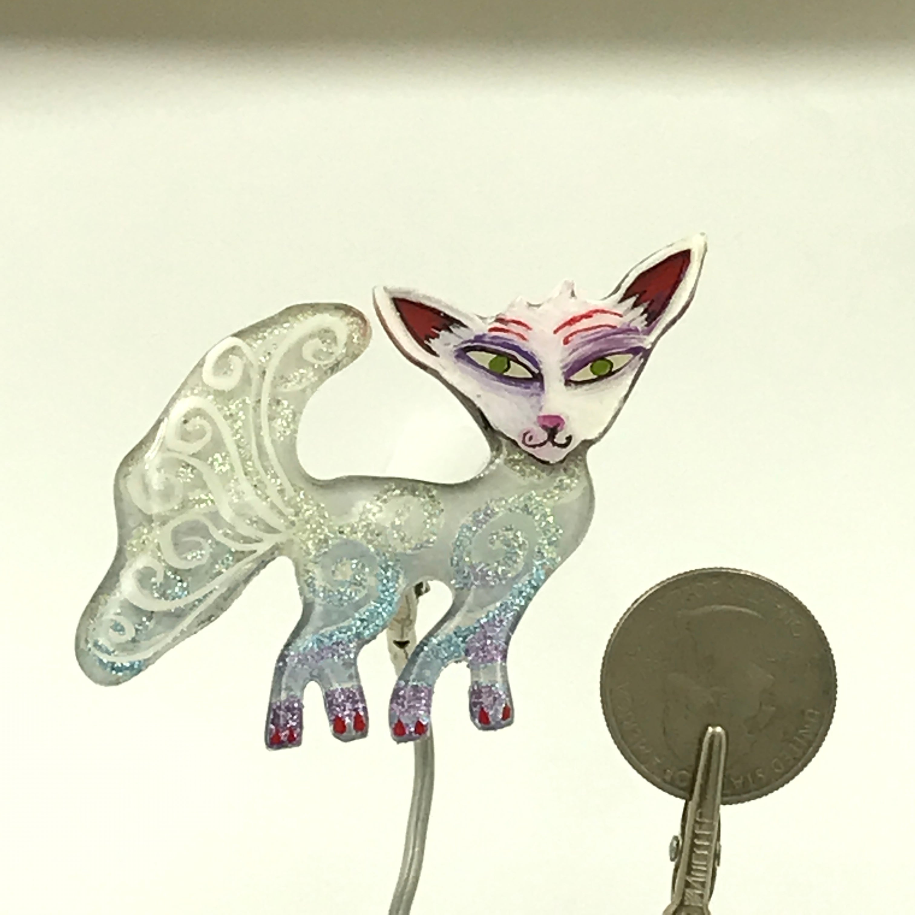 If you are pin challenged, you can have a complimentary stand that will clip on the pinback, just indicate in your special instructions. It’s a little work of art, there are lots of ways to display it.