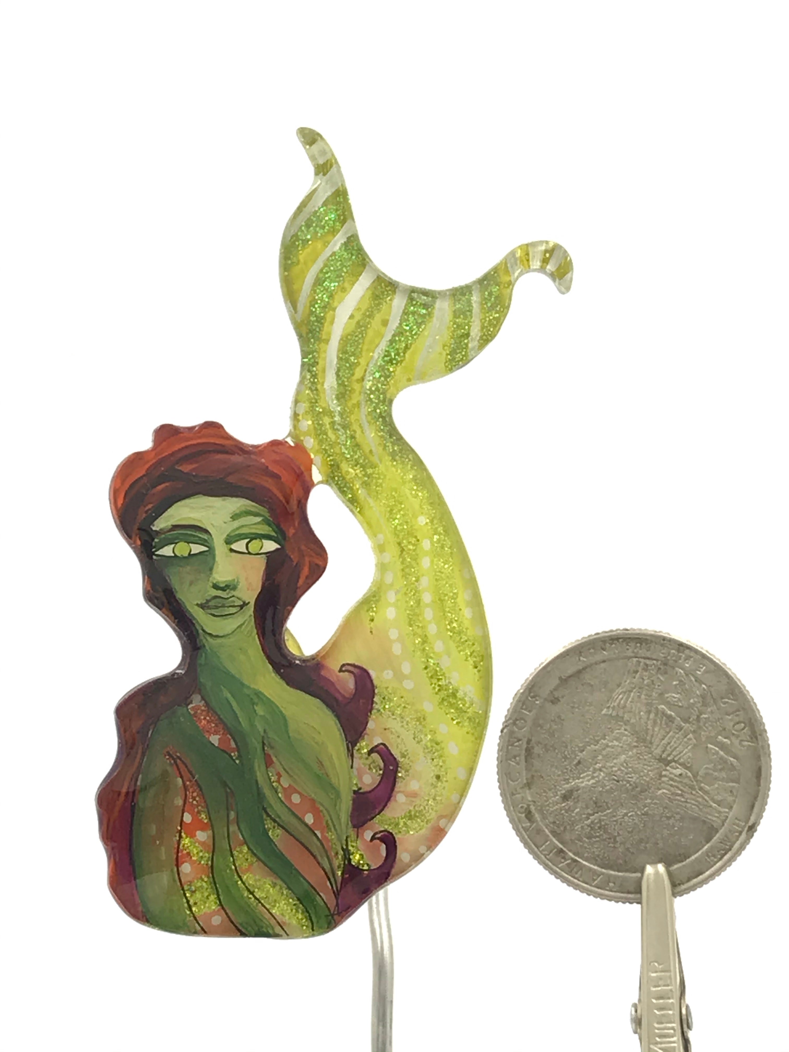 If you are pin challenged, you can have a complimentary stand that will clip on the pinback, just indicate in your special instructions. It’s a little work of art, there are lots of ways to display it.