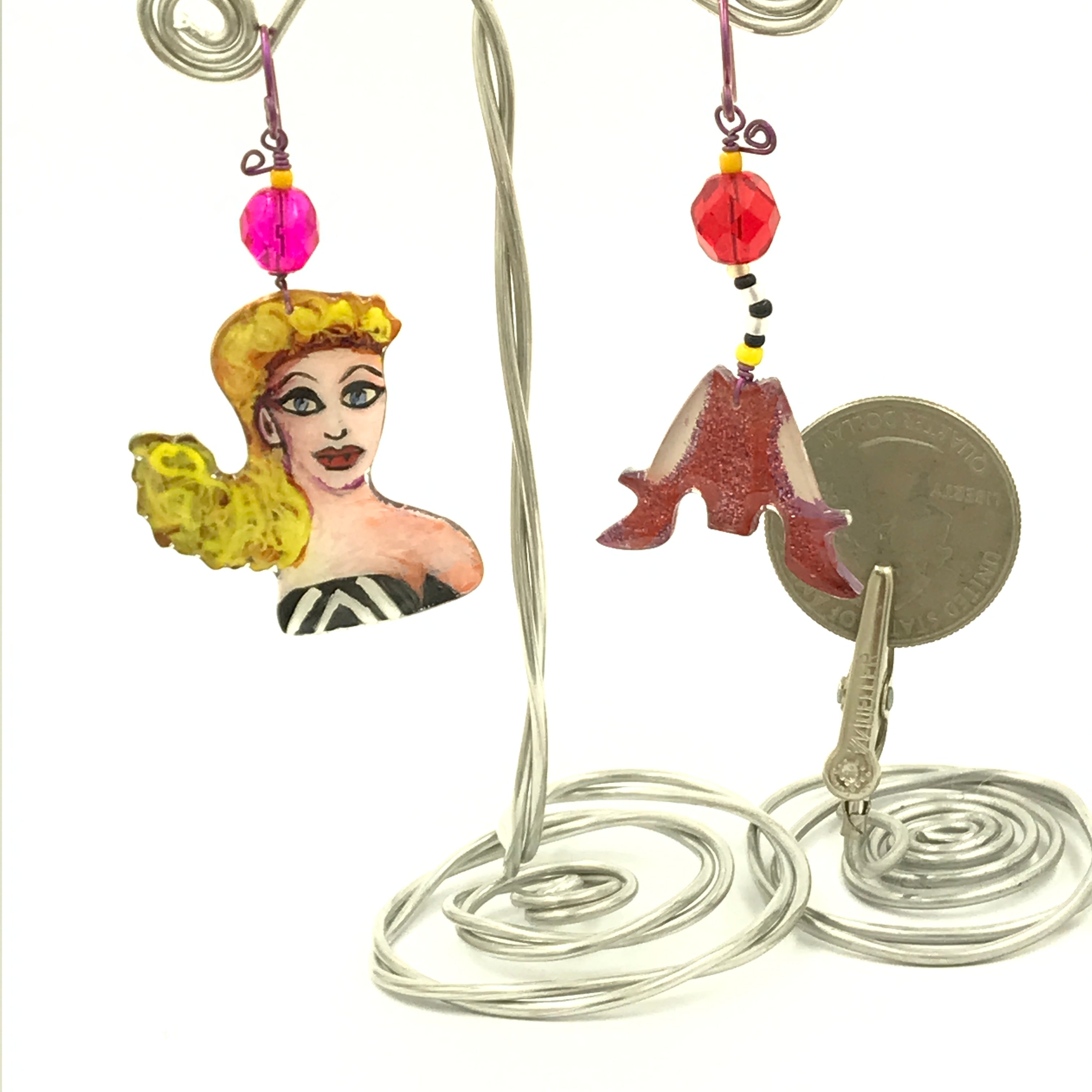 The lucite I paint on is super lightweight and will not pull on the ear, so be sure to wear the rubber wire keepers that come with each pair.