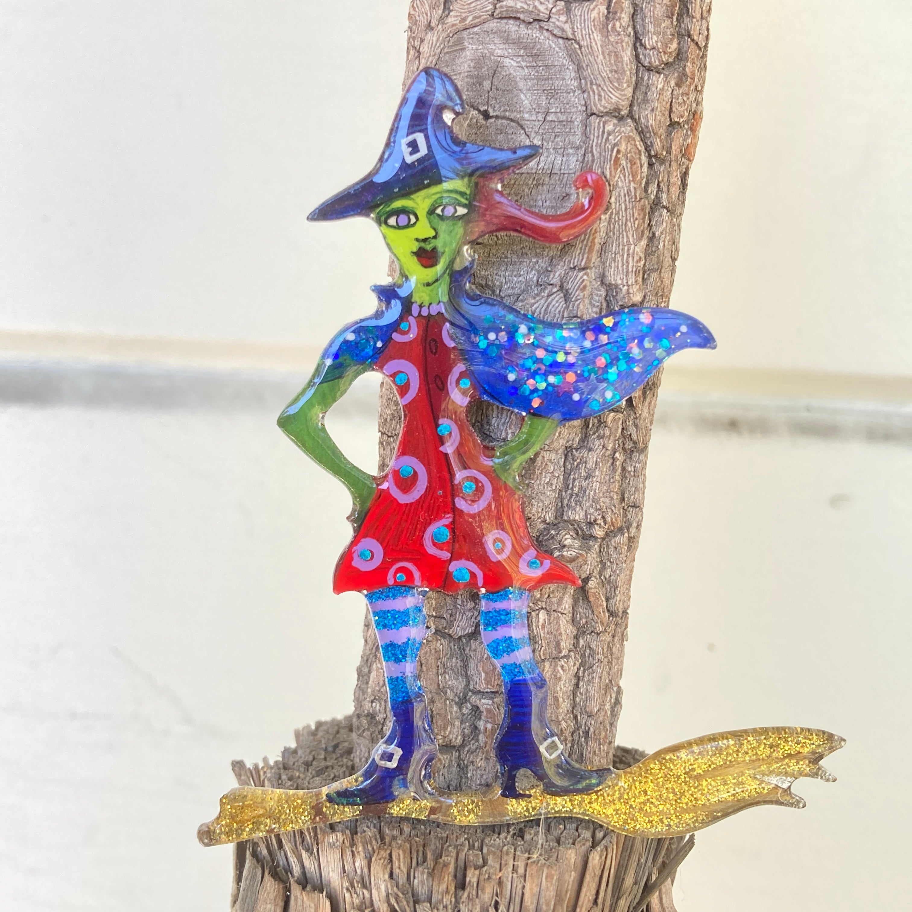 This is my first witch shape design, and she is no hunch backed sorry sad sack. She's in command of her powers and her broom.