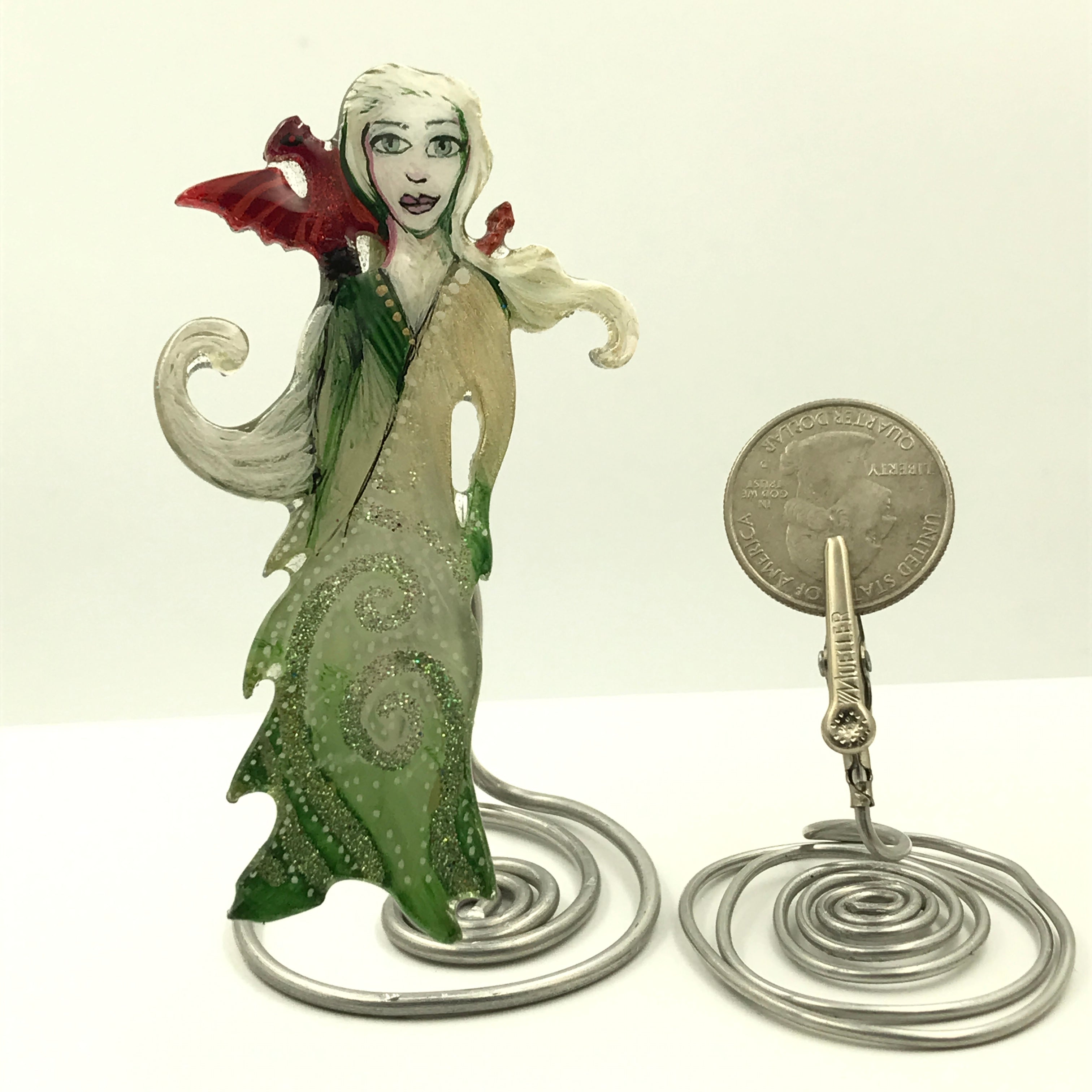 If you are pin challenged, you can have a complimentary stand that will clip on the pinback, just indicate in your special instructions. It’s a little work of art, there are lots of ways to display it.