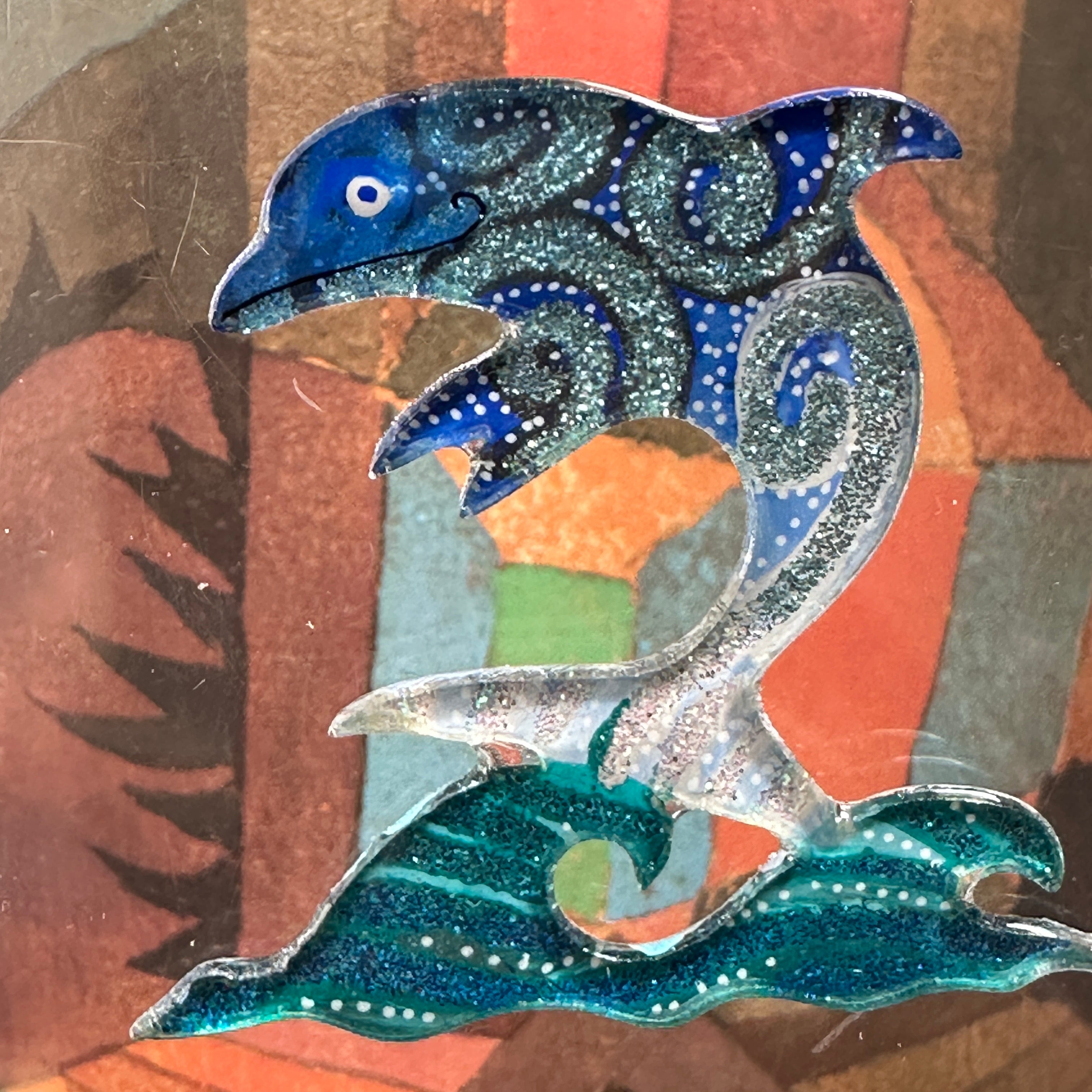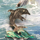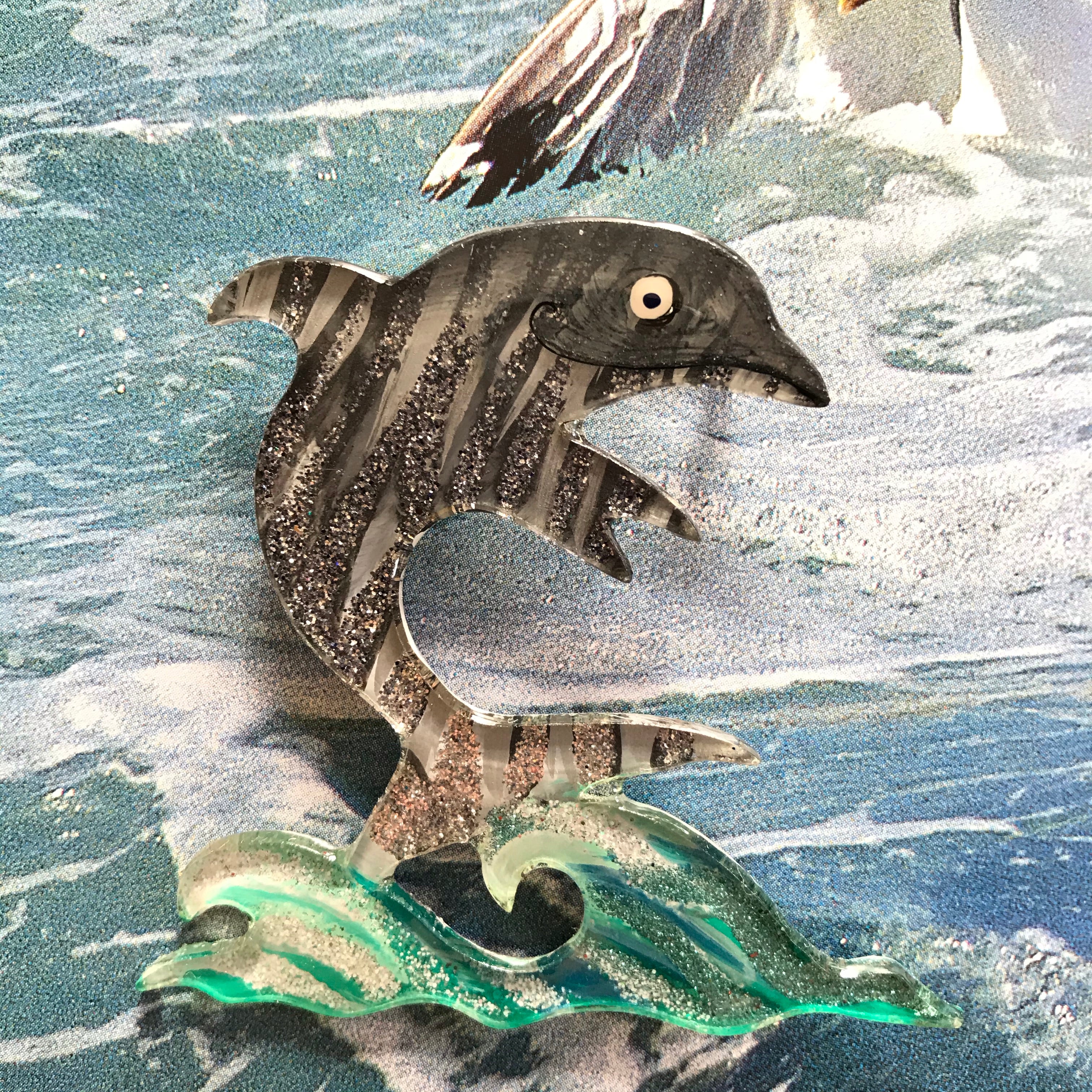 A dolphin rising out of the water, the picture and joy and a love of life.