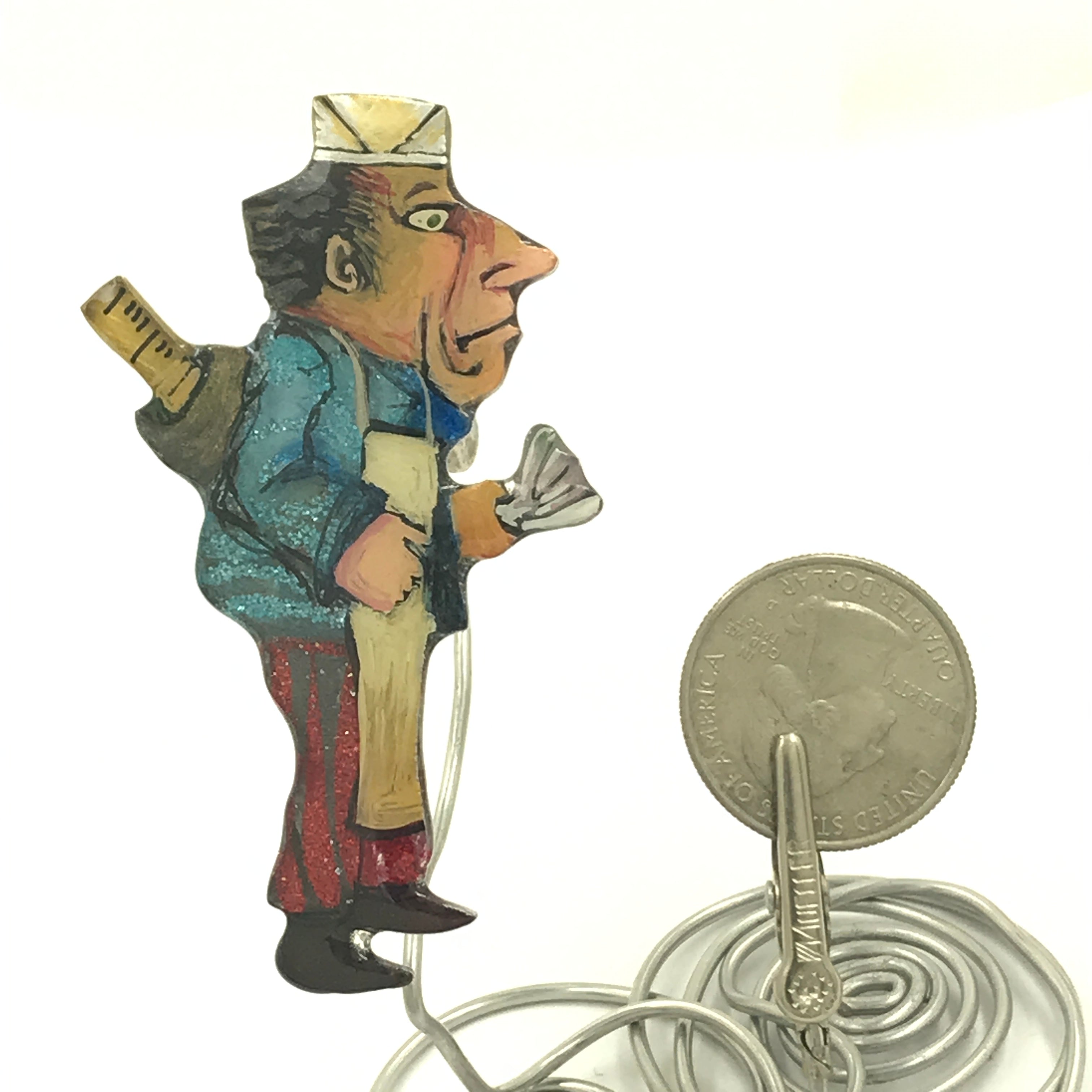 If you are pin challenged, you can have a complimentary stand that will clip on the pinback, just indicate in your special instructions. It’s a little work of art, there are lots of ways to display it.