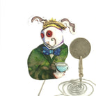 If you are pin challenged, you can have a complimentary stand that will clip on the pinback, just indicate in your special instructions. It’s a little work of art, there are lots of ways to display it.