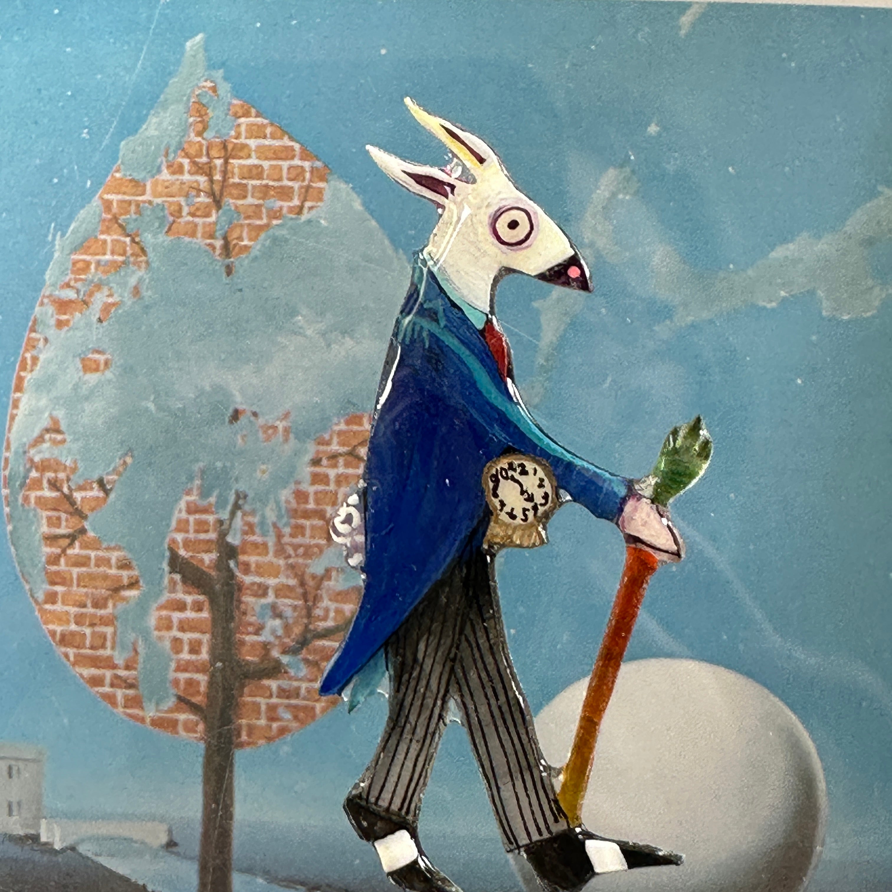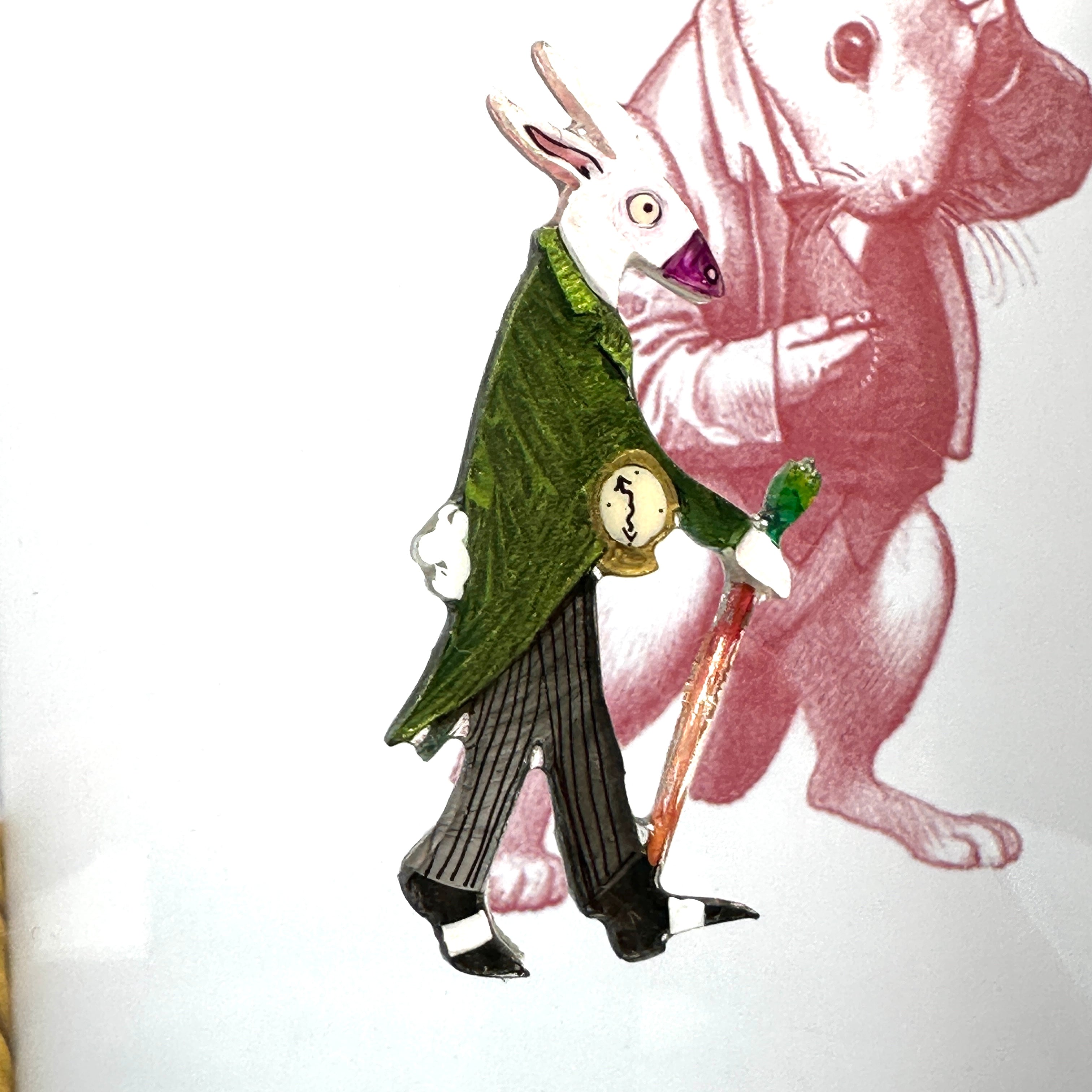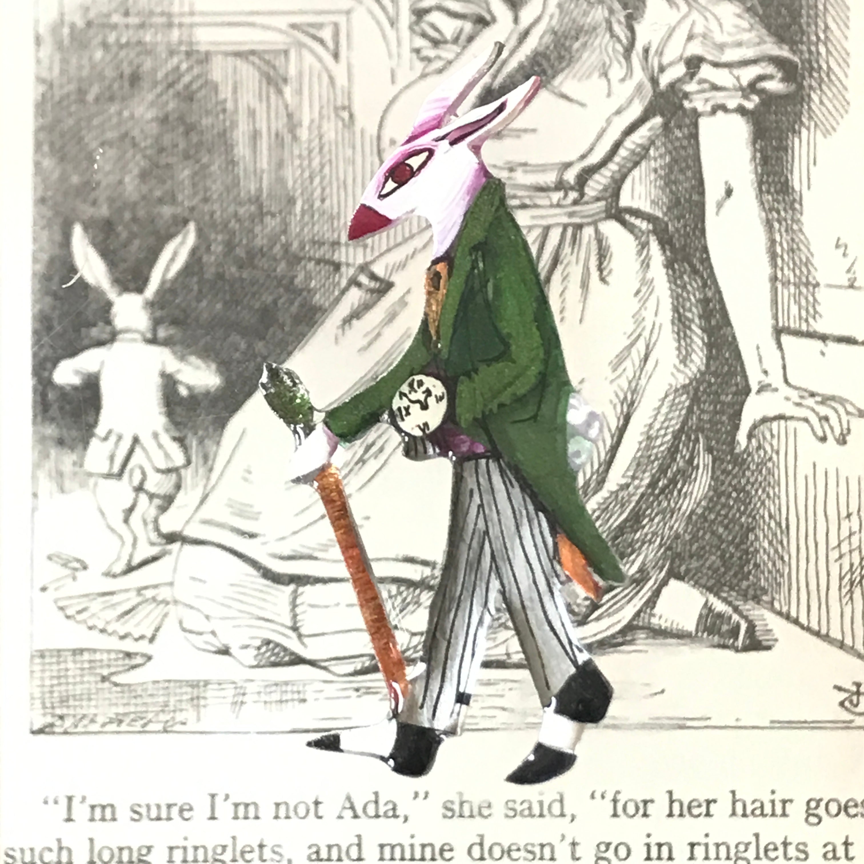 "Oh my ears and whiskers, I shall be late!"  He's never on time - but he sure means to be.  Always in a rush, chasing after a moment that's just ahead of him.