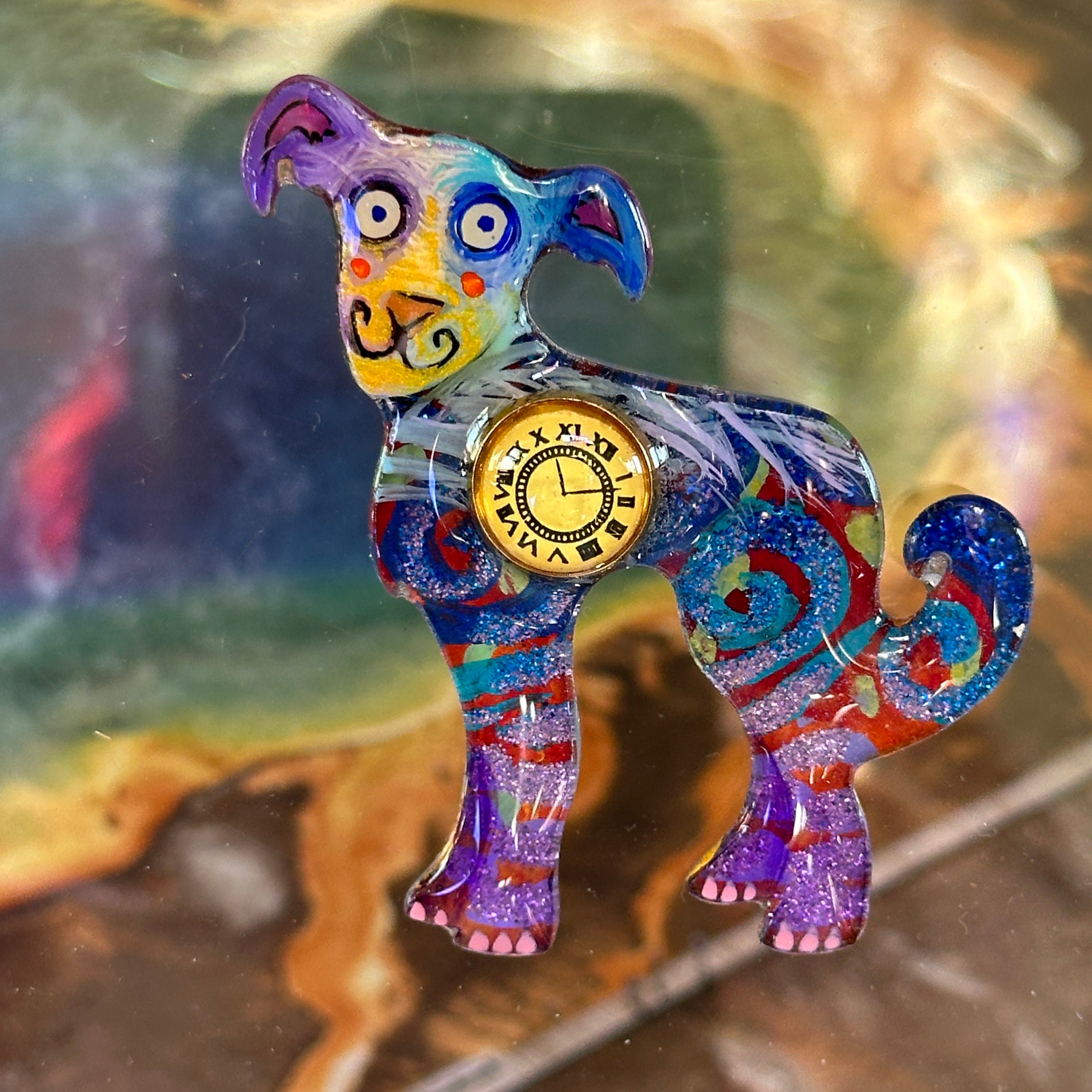 If you are pin challenged, you can have a complimentary stand that will clip on the pinback, just indicate in a note. It’s a little work of art, there are lots of ways to display it.